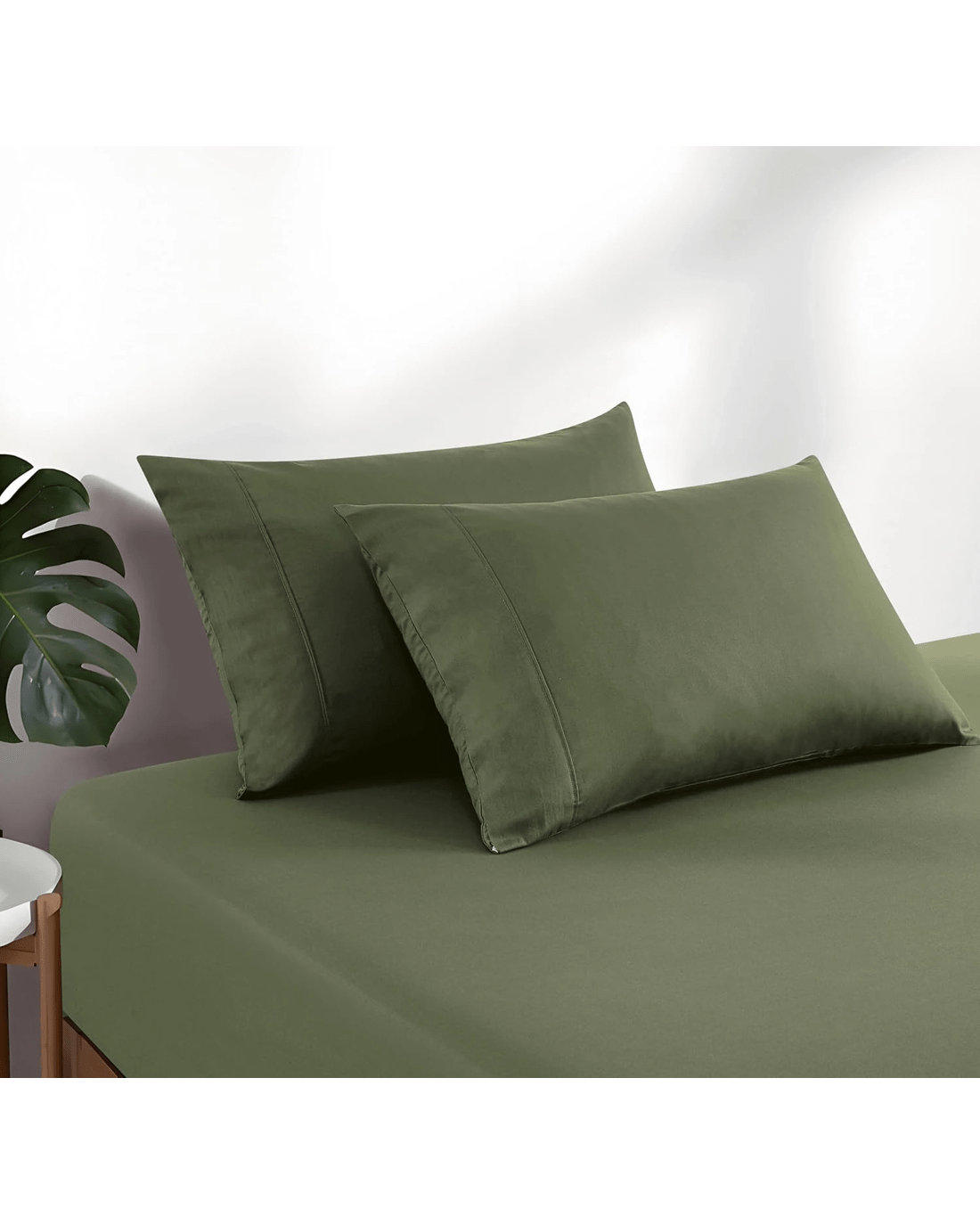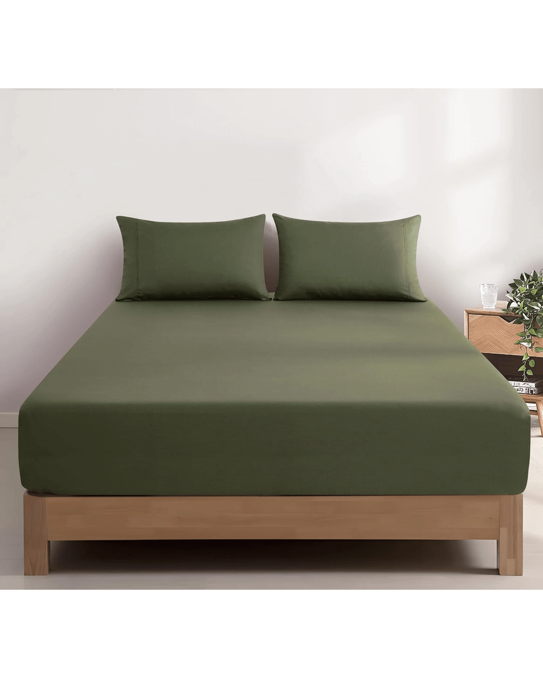 Gioia Casa Vintage Washed Cotton Fitted Sheet Set Soft Breathable - Double Bed - Khaki Green