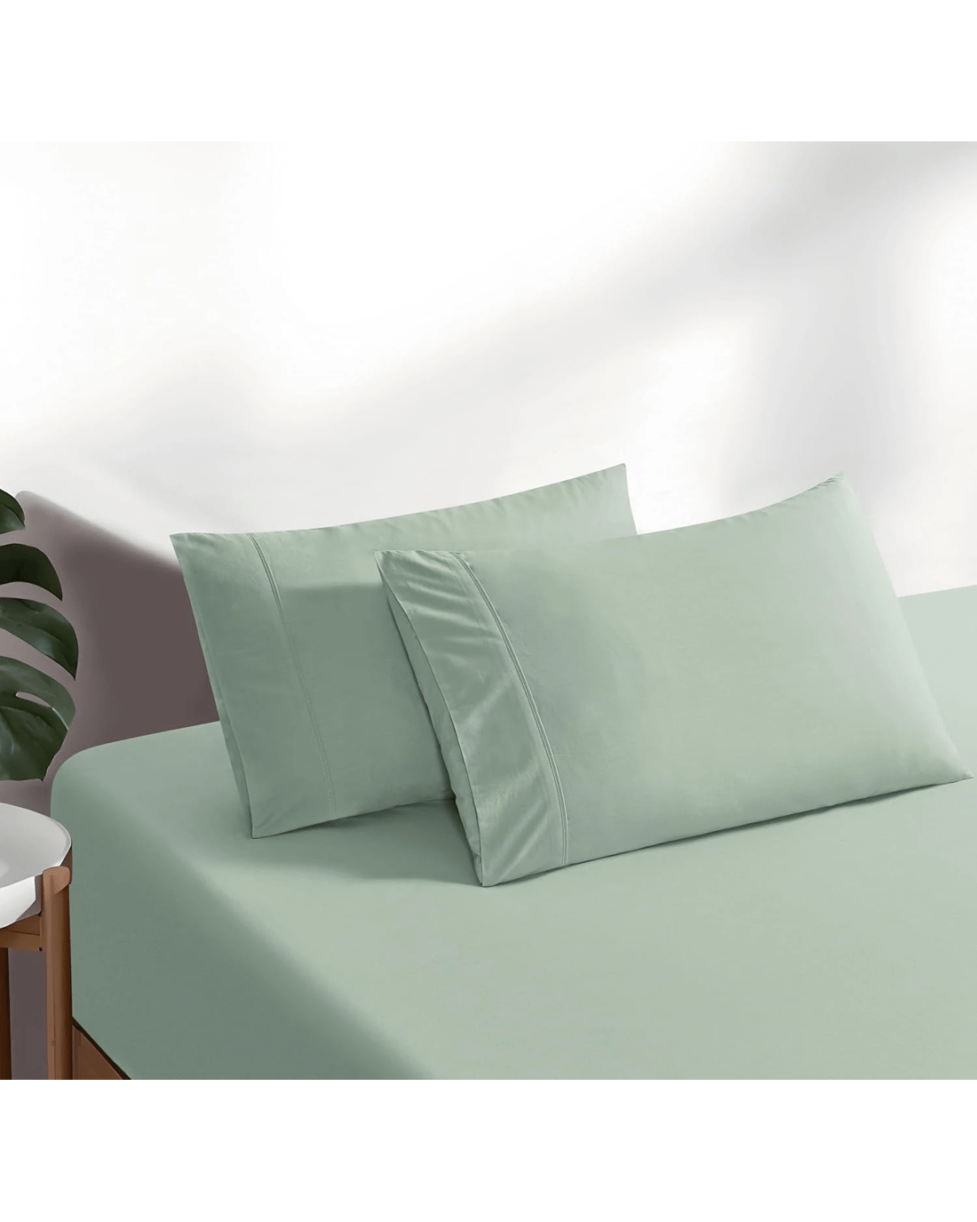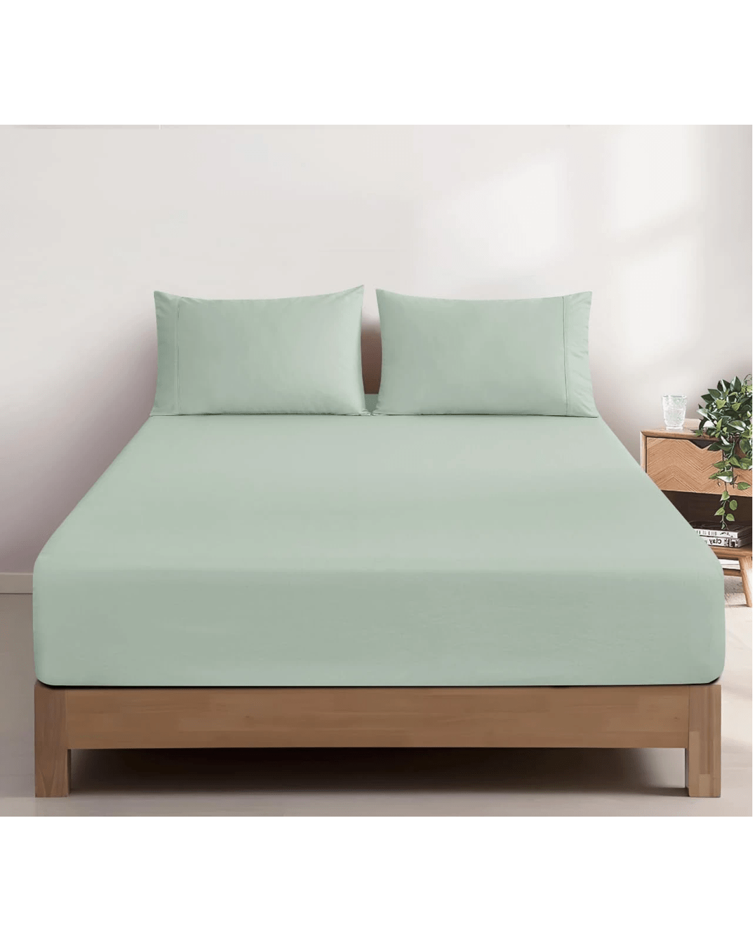 Gioia Casa Vintage Washed Cotton Fitted Sheet Set Soft Breathable - King Bed - Sage