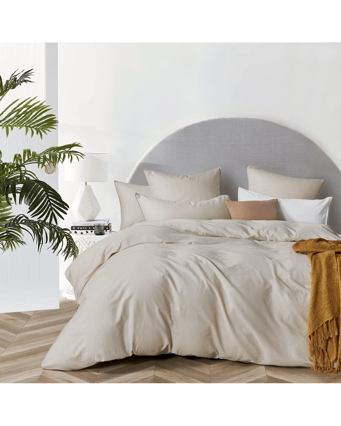 Gioia Casa Vintage Washed Cotton Quilt Cover Set Soft Breathable - Queen Bed - Natural