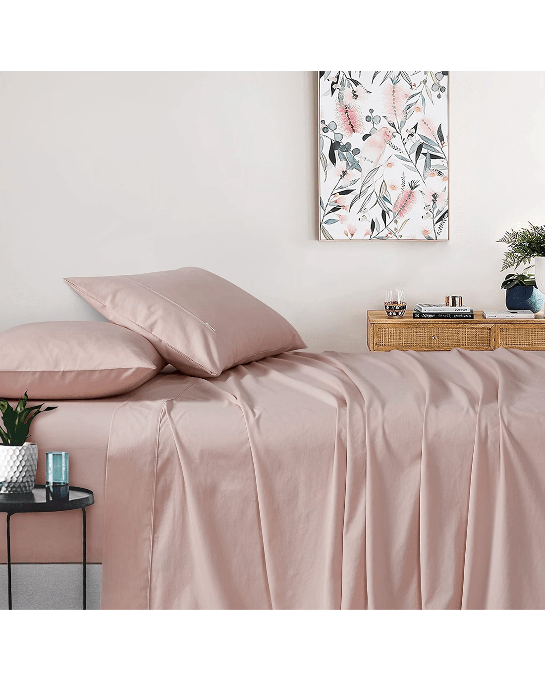 Gioia Casa Vintage Washed Cotton Sheet Set Soft Breathable - King Bed - Pink