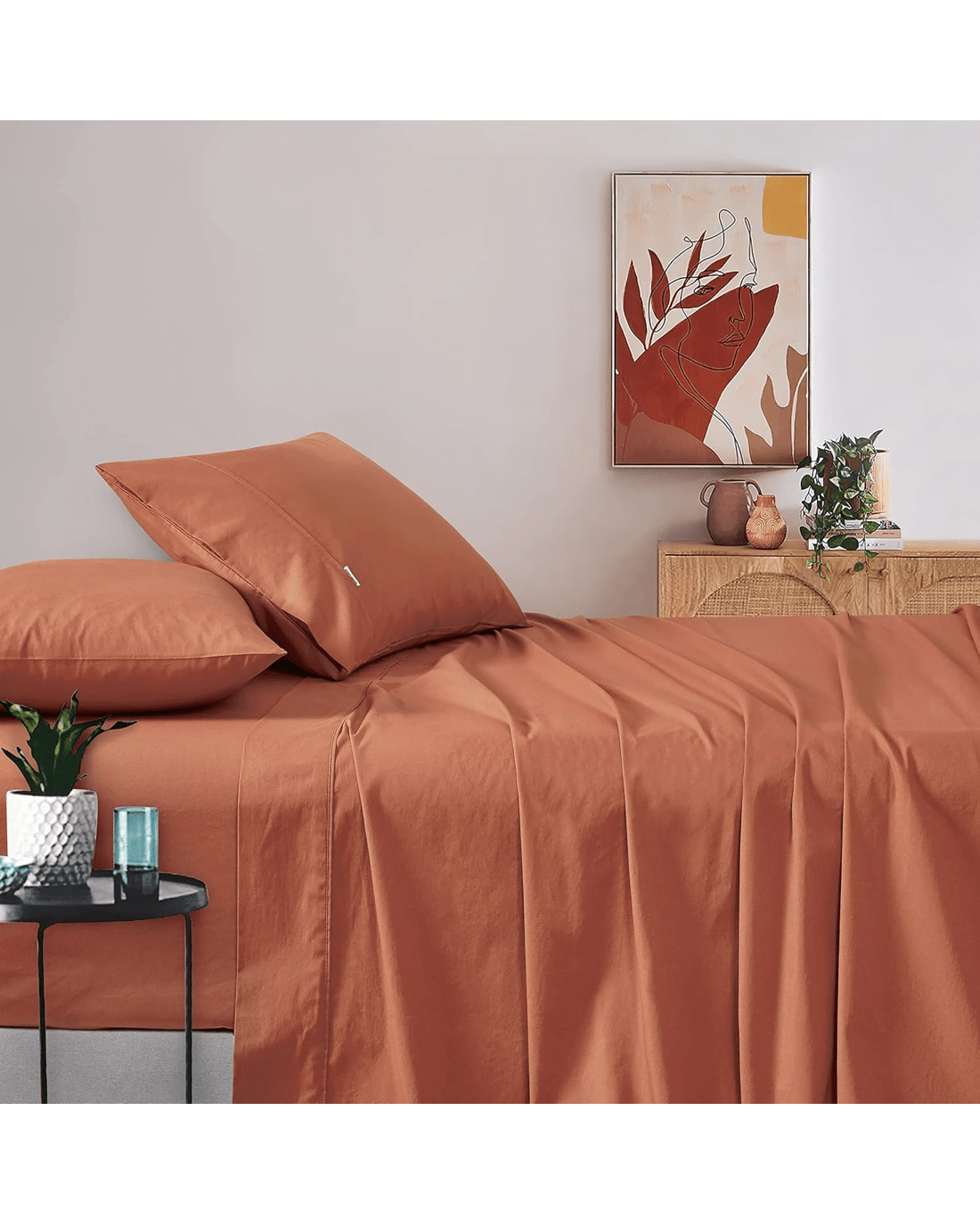 Gioia Casa Vintage Washed Cotton Sheet Set Soft Breathable - Queen Bed - Brick