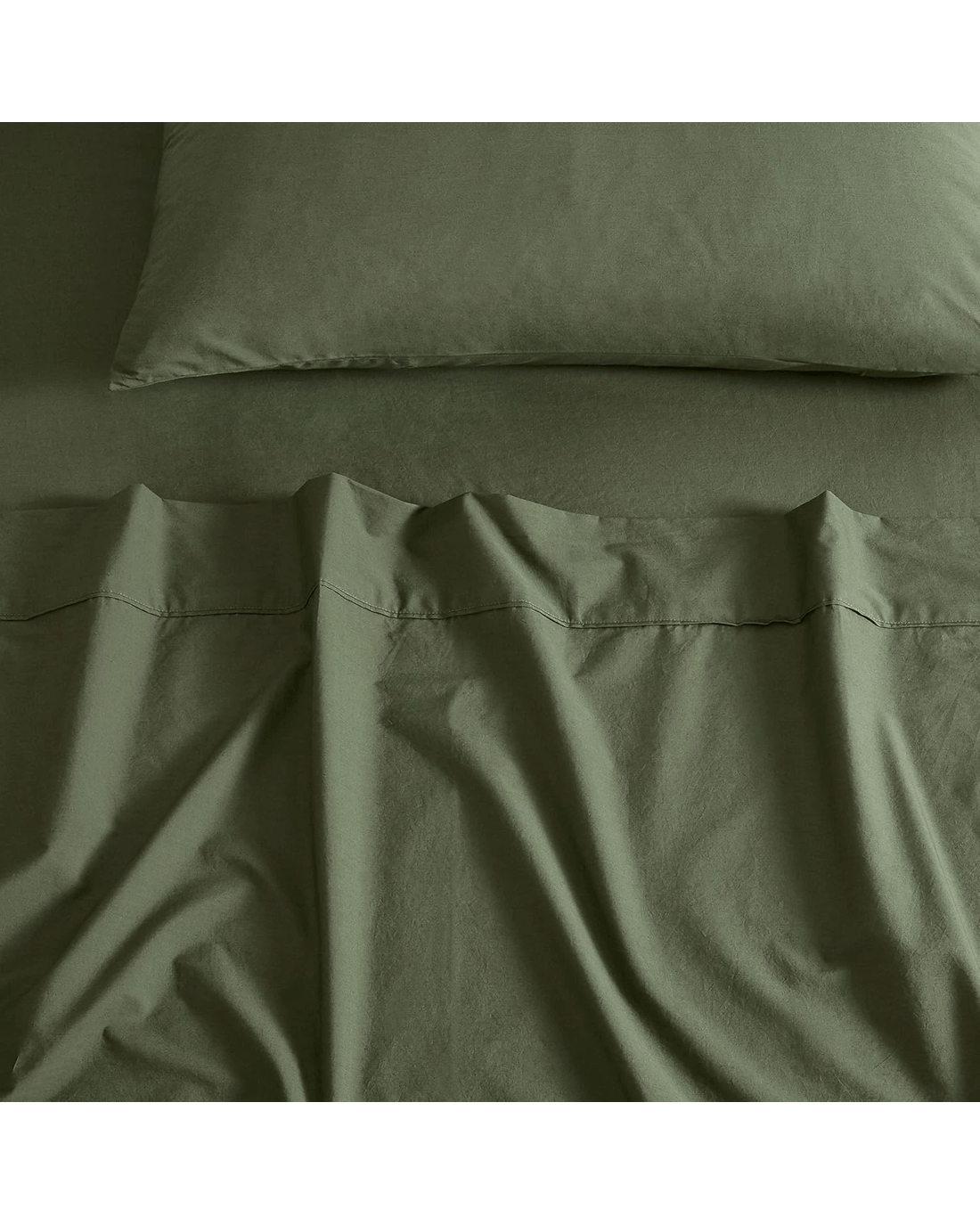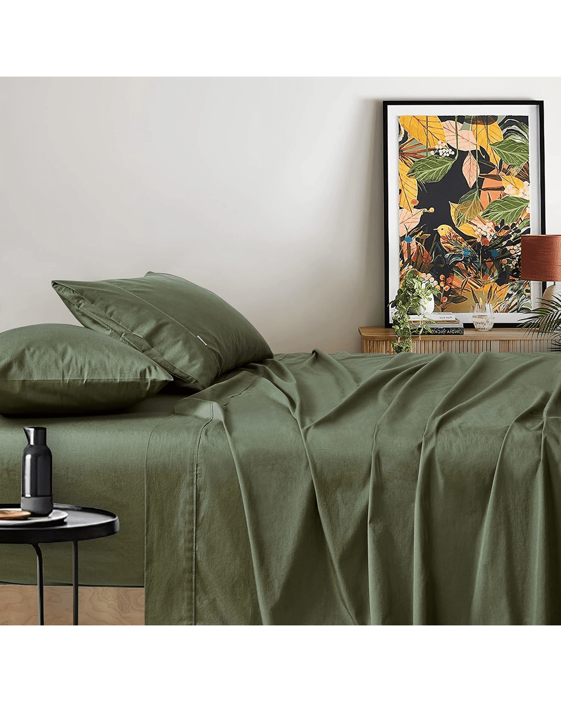 Gioia Casa Vintage Washed Cotton Sheet Set Soft Breathable - Queen Bed - Khaki Green