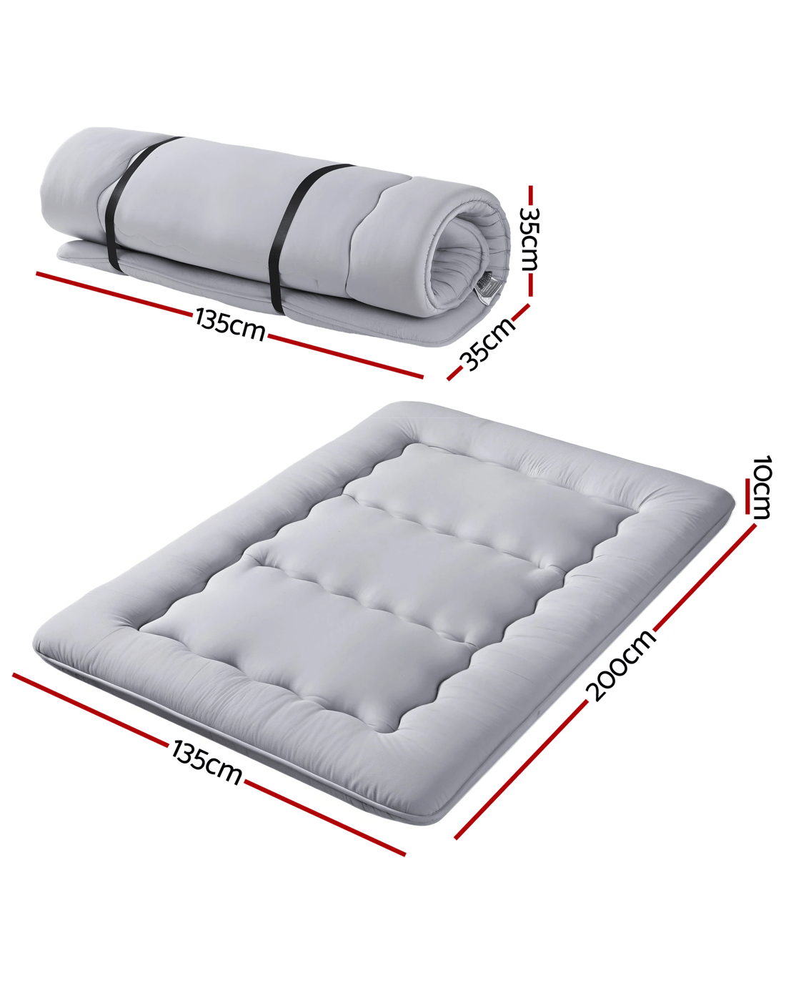 Sold by Aisle SixGiselle Bedding 10cm Japanese Floor Mattress Foldable Futon Mattress Washable Cover Straps - Grey