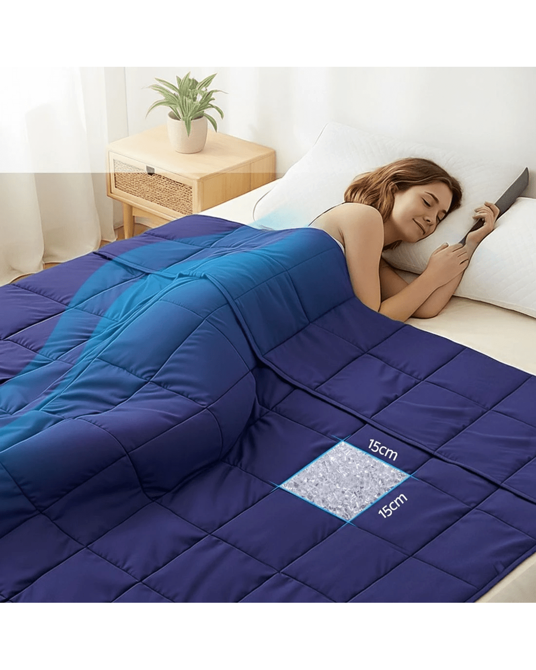 Discover deeper, more restful sleep with the Giselle Bedding Weighted Blanket. Crafted with a premium microfibre cover, it offers exceptional softness and breathability, keeping you comfortable all night. The innovative 5-layer structure locks in high-density glass beads for stable weight distribution and long-lasting durability. With Deep Touch Pressure Stimulation (DTPS), the blanket evenly applies gentle pressure to stimulate pressure points, helping calm your body and mind. Designed to adapt to your body shape and posture, it enhances relaxation while improving overall sleep quality. Finished with secure stitching and four-band edges, this weighted blanket is not only effective but built to last—perfect for home, travel, or relaxation time.