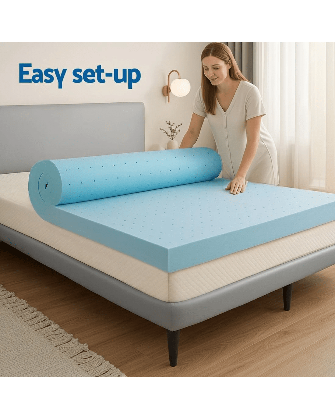 Sold by Aisle SixGiselle 12cm Memory Foam Mattress Topper Ventilated Cool Gel Bamboo Cover Double - Double Bed - Blue