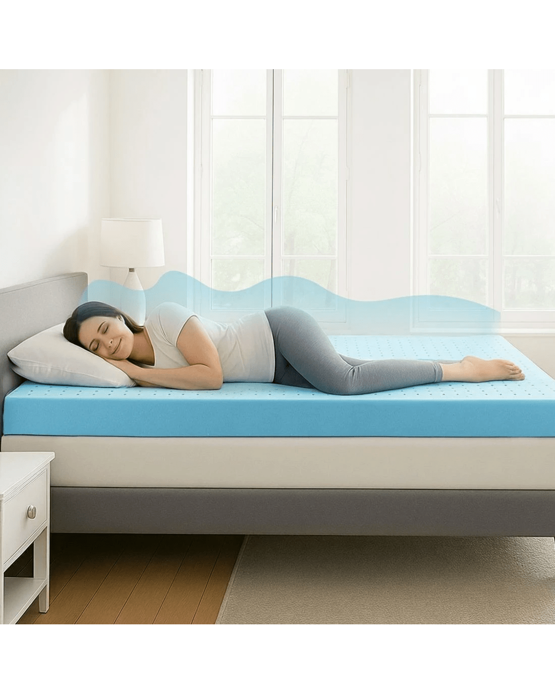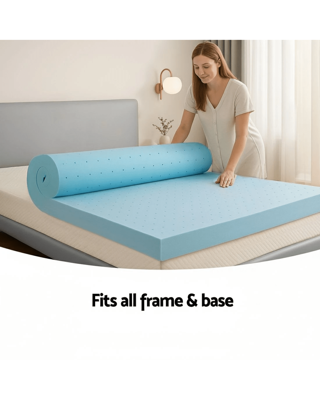 Sold by Aisle SixGiselle 12cm Memory Foam Mattress Topper Ventilated Cool Gel Bamboo Cover King - Blue
