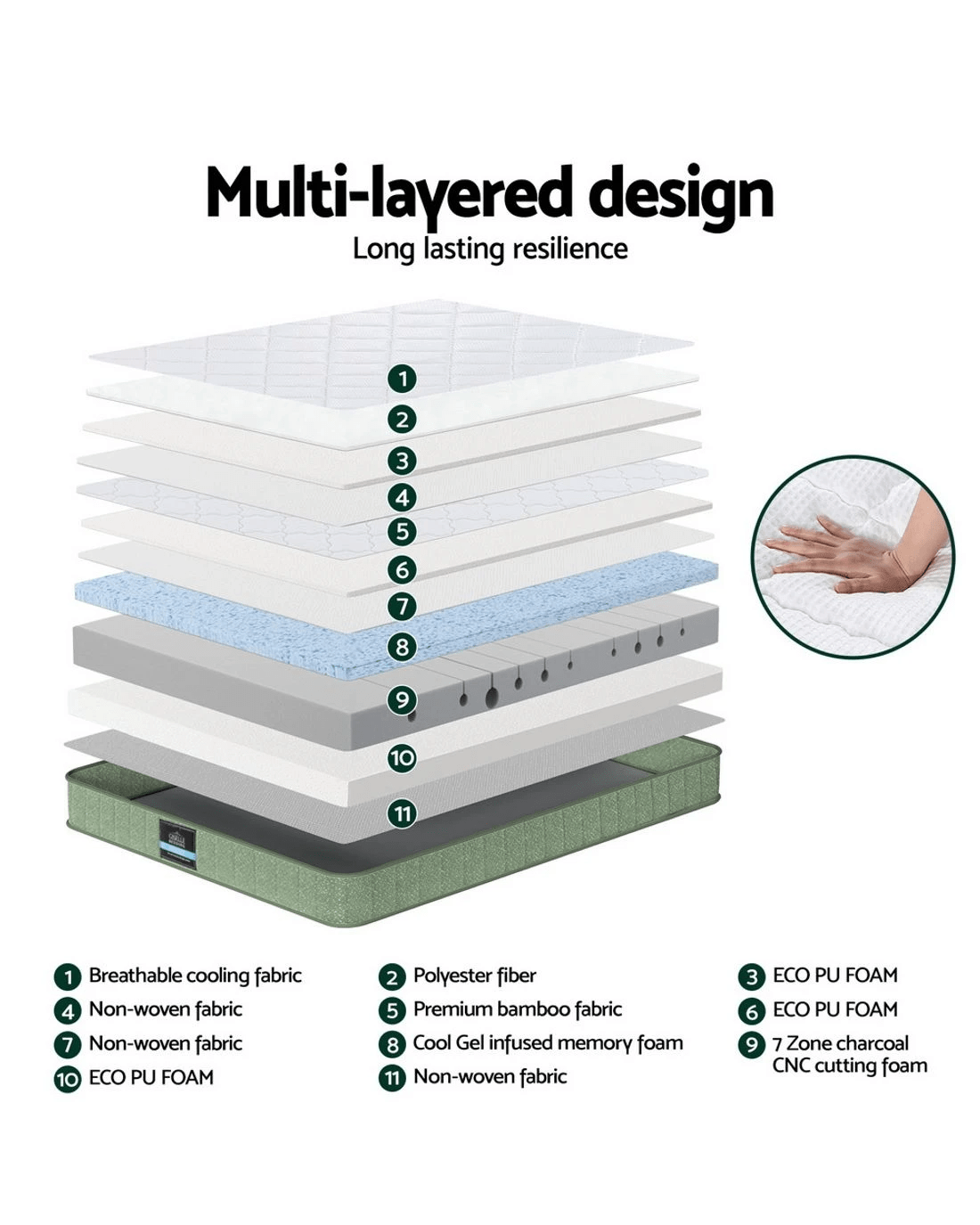 Foam Material: Cooling gel-infused memory foam, 7 Zone CNC cutting foam