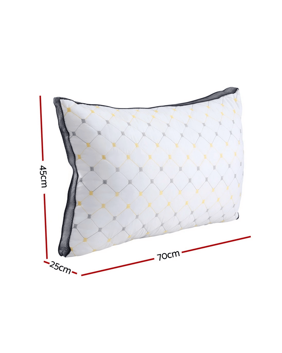 Experience comfort with the Giselle Bedding Microfibre Pillow, featuring a generous 1kg polyester fibre filling and 40g soft microfibre cover. The embroidery adds a touch of style to your bedroom, while the design ensures optimal support for every type of sleeper, from side to back to stomach positions.