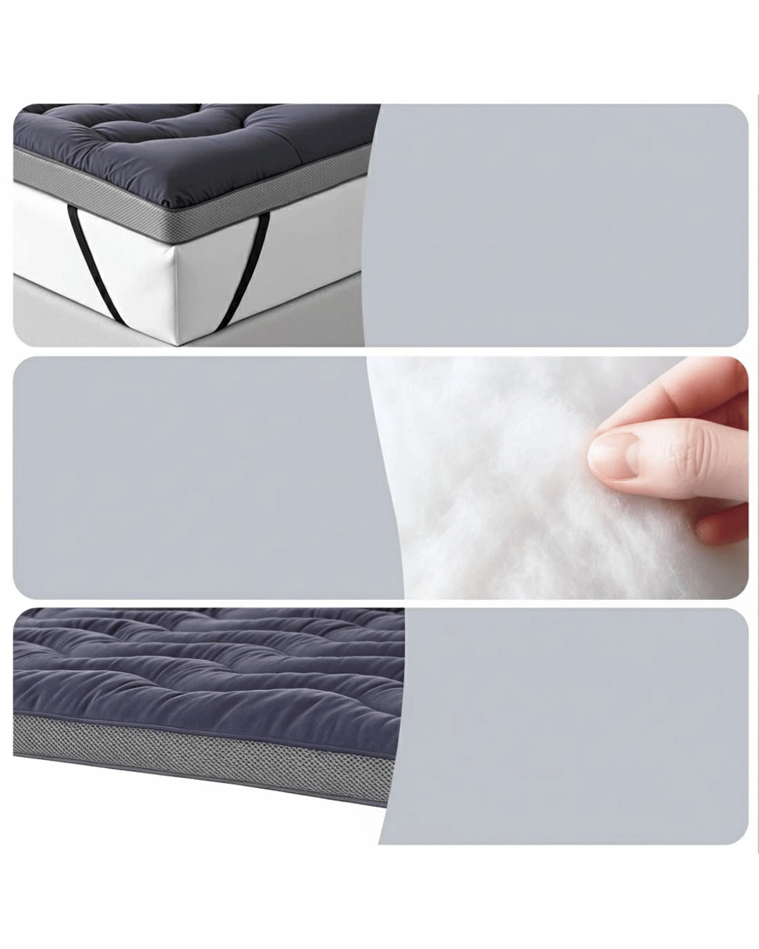 Enhance your sleep with our Giselle Bedding Pillowtop Topper. Featuring a 3D wave quilted pattern, breathable bamboo cover, and anti-allergy properties. It's hygienically vacuum-packed and machine-washable for easy care, ensuring a comfortable and clean sleeping environment.