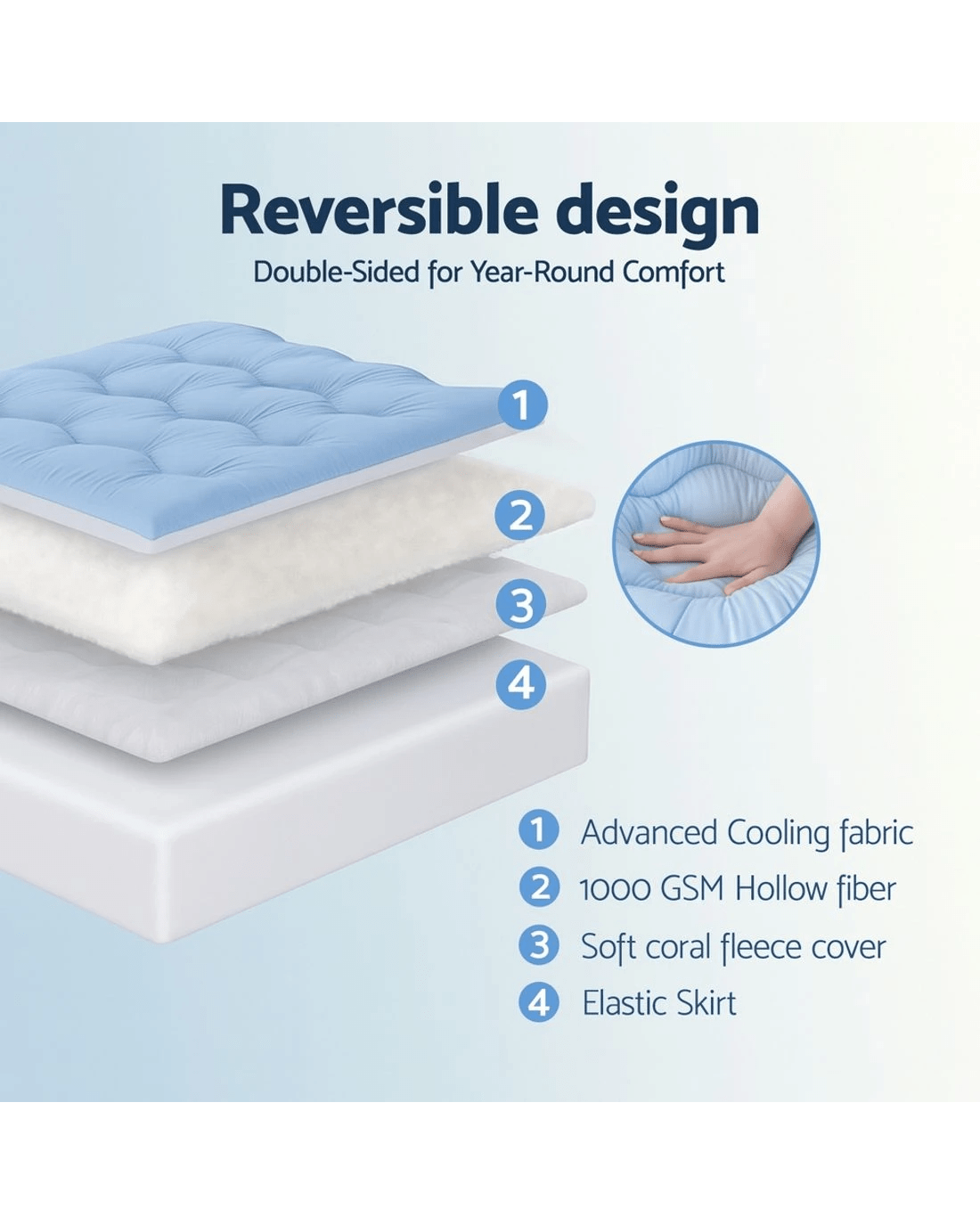 Giselle 5cm Mattress Topper Pillowtop toppers Double-Sided Double - Multi