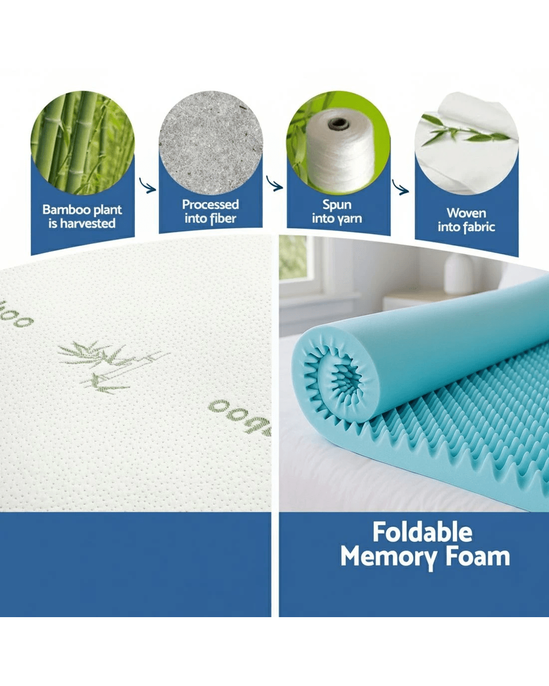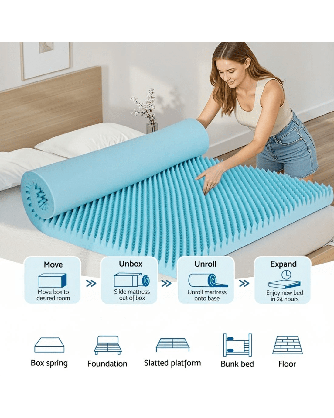 Giselle 8cm Memory Foam Mattress Topper Gel Egg Crate Foam Bamboo - Double Bed - Blue