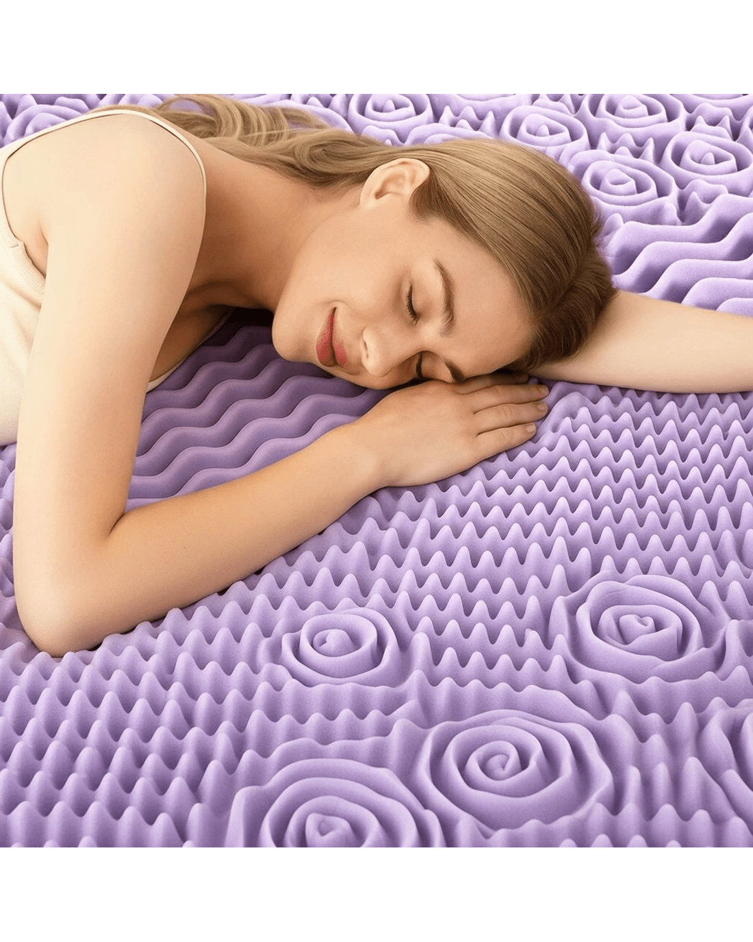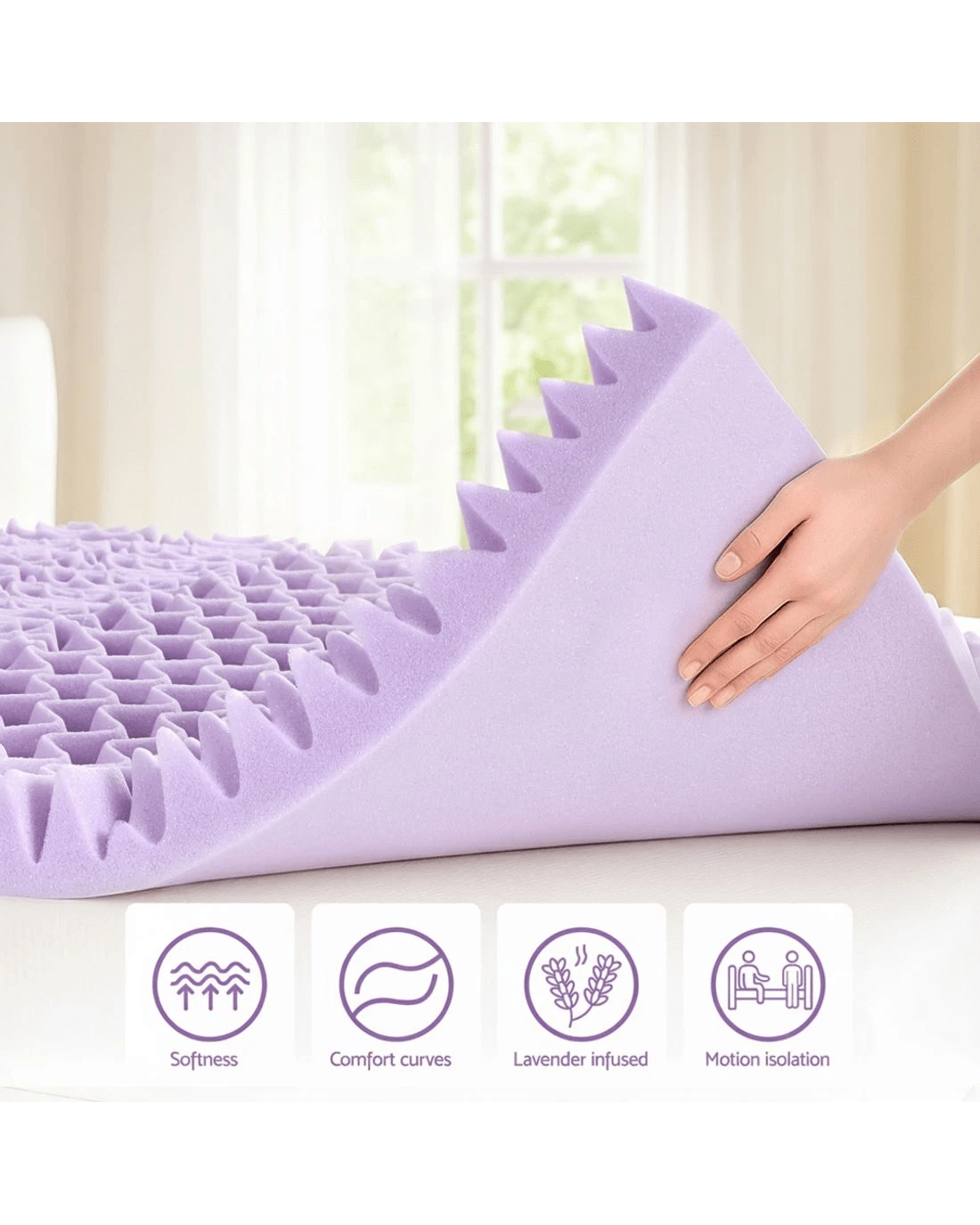 Giselle 8cm Memory Foam Mattress Topper Lavender Infused Bamboo Cover 7-Zone King Single - Purple