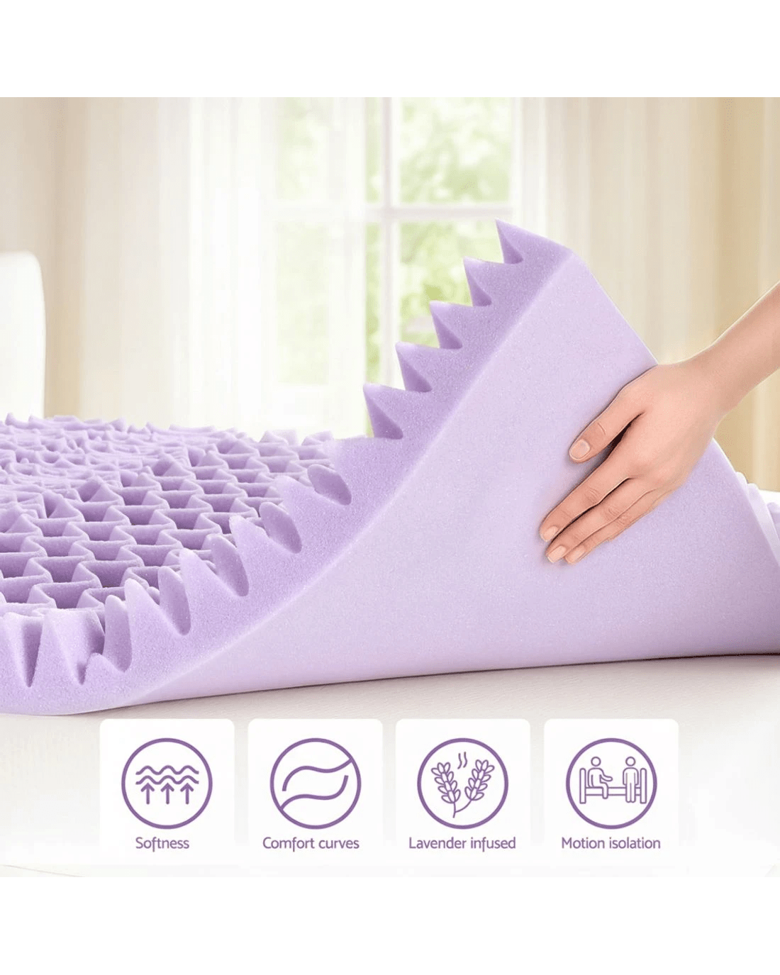 Giselle 8cm Memory Foam Mattress Topper Lavender Infused Bamboo Cover 7 Zone Single Single Bed - Single Bed - Purple
