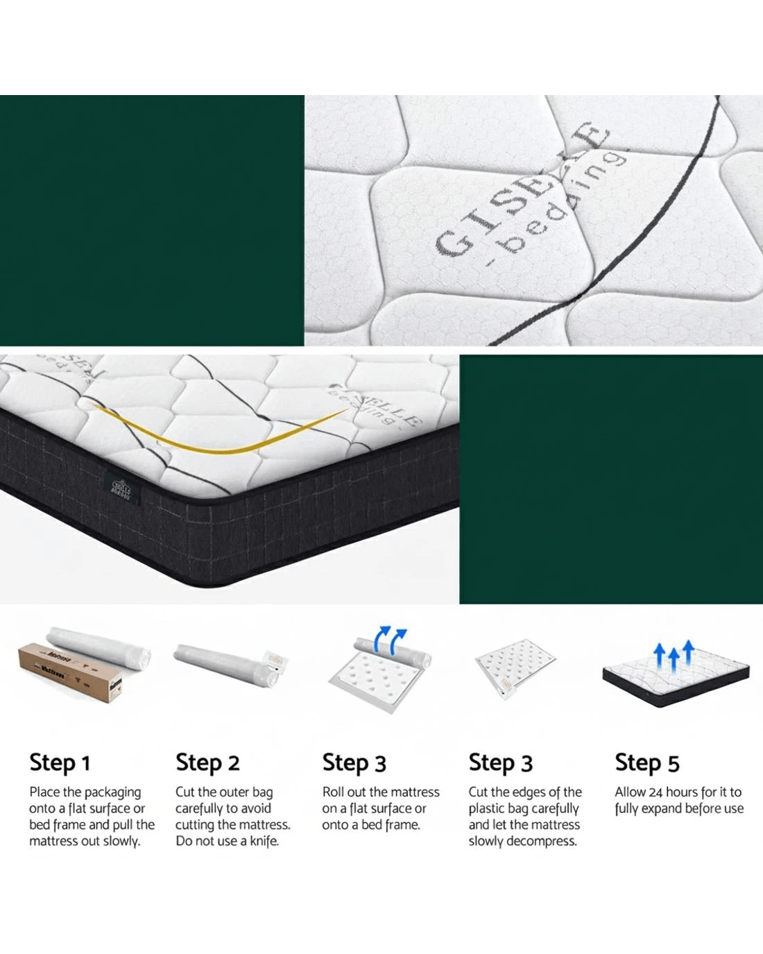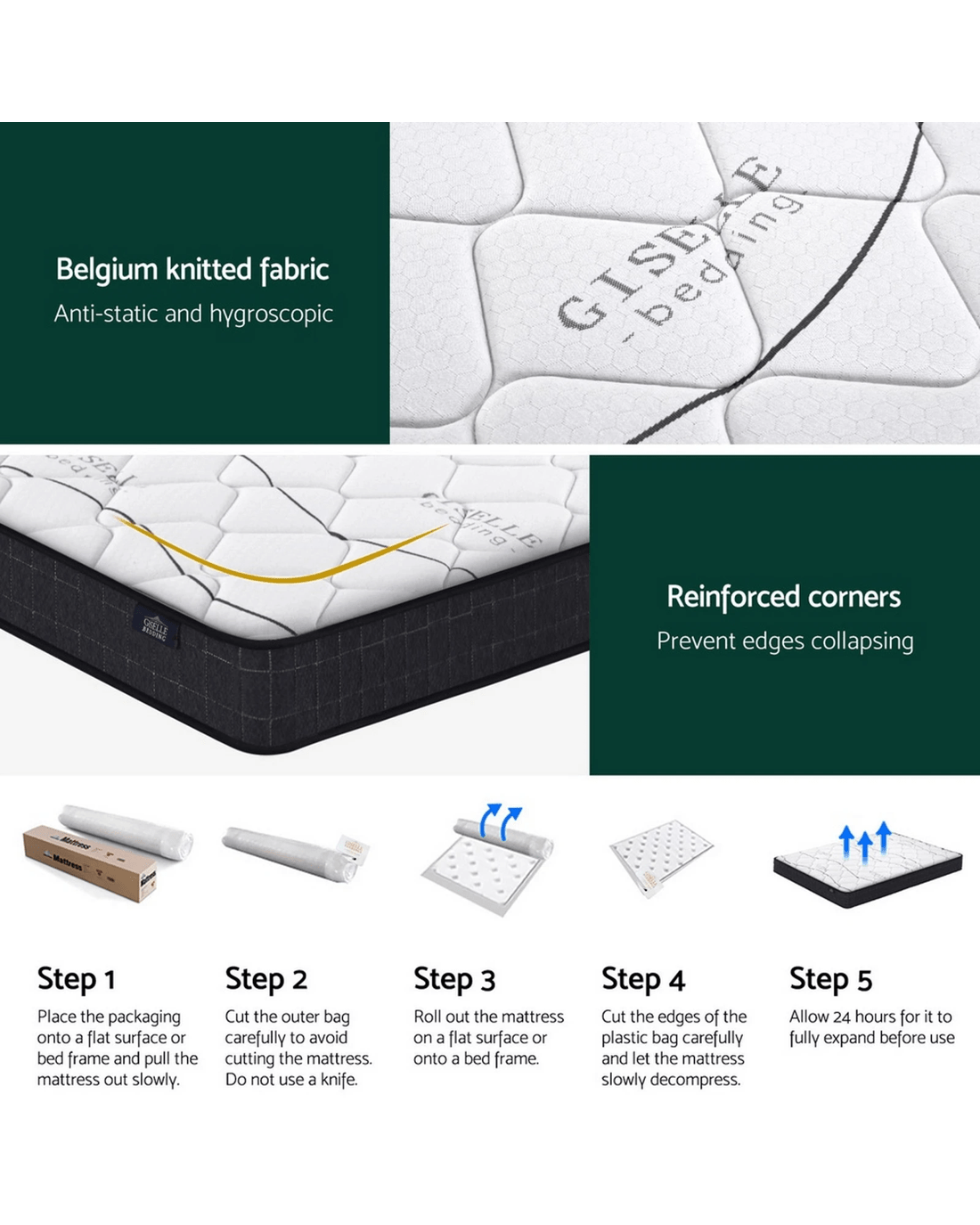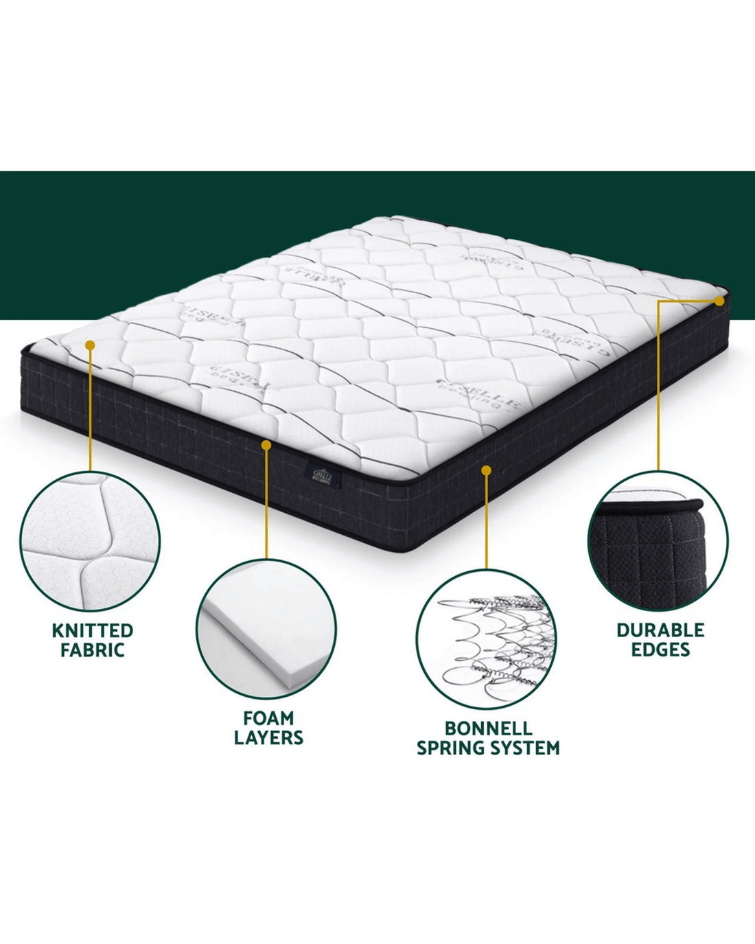 Who needs a Bonnell spring mattress? The answer is someone who wants a relatively firm and comfortable sleeping surface. And that is what you get with our Giselle Beddings Glay Series Bonnell Spring Mattress. The Bonnell spring system uses springs that are hourglass-shaped to provide better support for your body, more resilience and better ventilation. Our mattress delivers all of the above with a level of comfort that surpasses expectations and a medium firmness that many Australians desire. The mattress is meticulously constructed with layers of premium materials. High-density foam fills the inside of the mattress in between the stable Bonnell spring core and a soft quilting layer rests on top. Essentially, you get a solid mattress that retains its shape well for longlasting use, while still being supple and comfortable for you to enjoy all its inherent benefits. So indulge in a mattress that knows your sleep well. Befriend a Giselle Beddings mattress today.