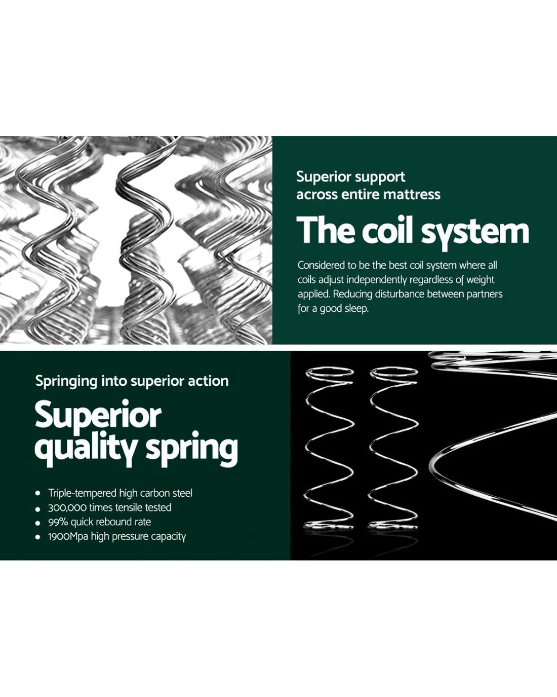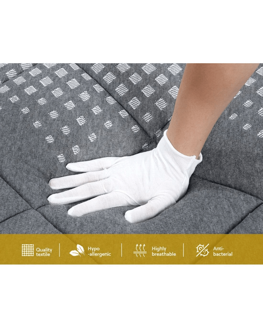 Who needs a medium firm mattress? The answer is someone who's waking up with muscle and body aches every day. If your mattress is not providing optimum support, our Giselle Bedding Ella series Pillow Top mattress with 18cm thickness comes to your rescue. Crafted from quality materials with medium firm firmness level, our mattress is an epitome of excellent craftsmanship and innovative sleep technology. The mattress is wrapped in soft quilting top layer and premium knitted fabric and comes with high-density foam that ensures you stay comfortable while you're fast asleep, and the use of hypoallergenic materials in its construction makes it suitable for those at risk of developing any allergies. It also comes treated for dust mite and mould resistance, which offers you a peaceful night's sleep. The mattress also features enhanced 6-turn coil system for ultimate support and ensures zero partner disturbance so no waking up in the middle of the night due to motion transfer issues. It offers excellent support with even weight and pressure distribution. Additionally, our mattress is hygienically constructed and doesn't contain harmful chemicals that can affect your sleep. Better night sleep is assured with Giselle Bedding Ella series mattress
