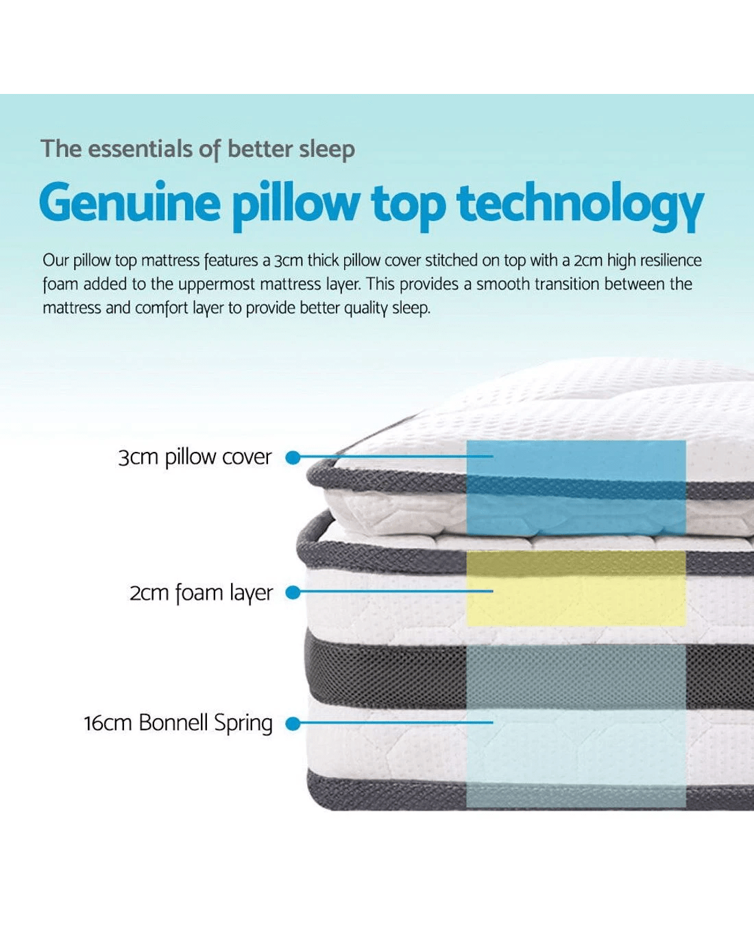 Giselle Bedding 21cm Mattress Pillow Top King Single - White