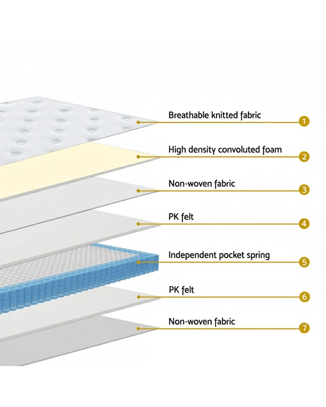 Experience premium comfort with the Giselle Bedding Breeze Series 30cm Mattress, featuring medium-firm support and Euro Top padding for pressure relief. Its independent pocket spring system with 6-turn coils adapts to your body, while high-density foam and reinforced edges ensure lasting durability. The breathable, hypo-allergenic knitted fabric promotes airflow and suits sensitive sleepers. Designed for spinal alignment and motion isolation, this sleek white mattress balances luxury with ergonomic support.