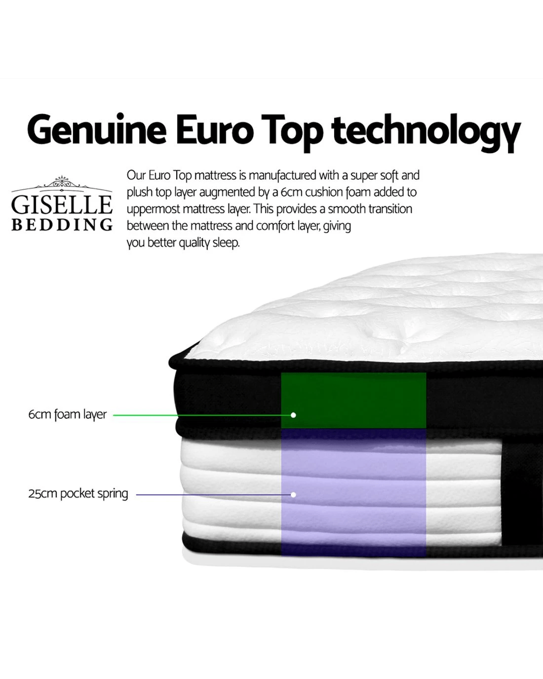 Giselle Bedding 31cm Mattress Euro Top Single - Multi