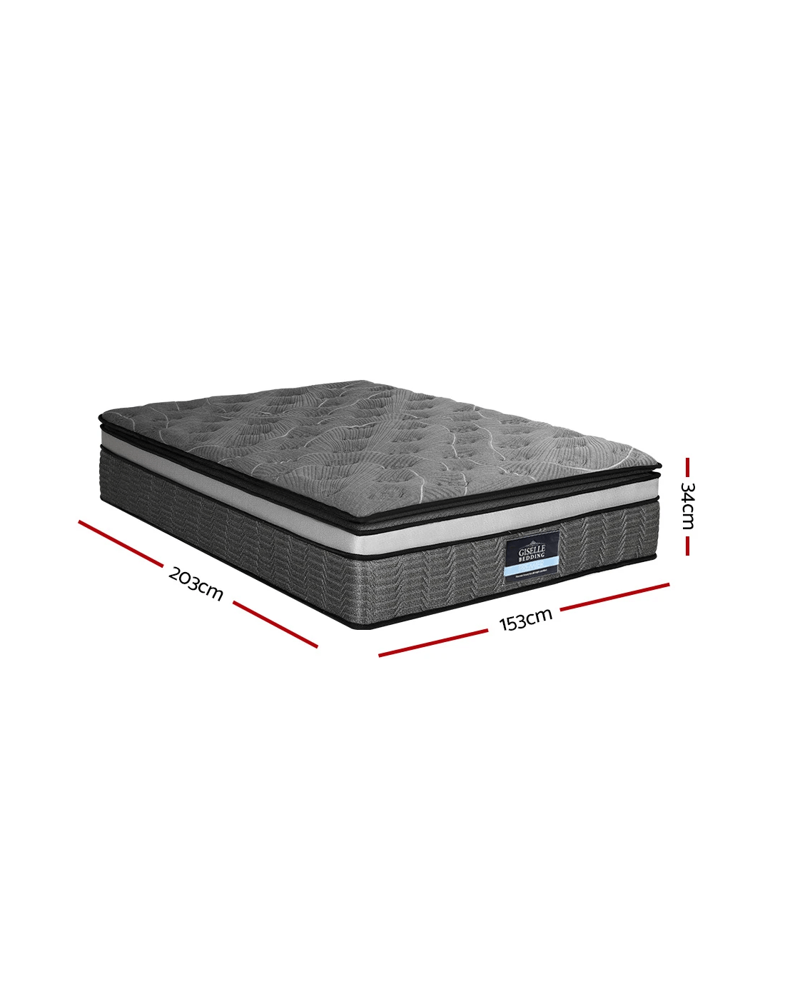 Giselle Bedding 34cm Mattress Double Layer Pocket Spring Queen - Charcoal