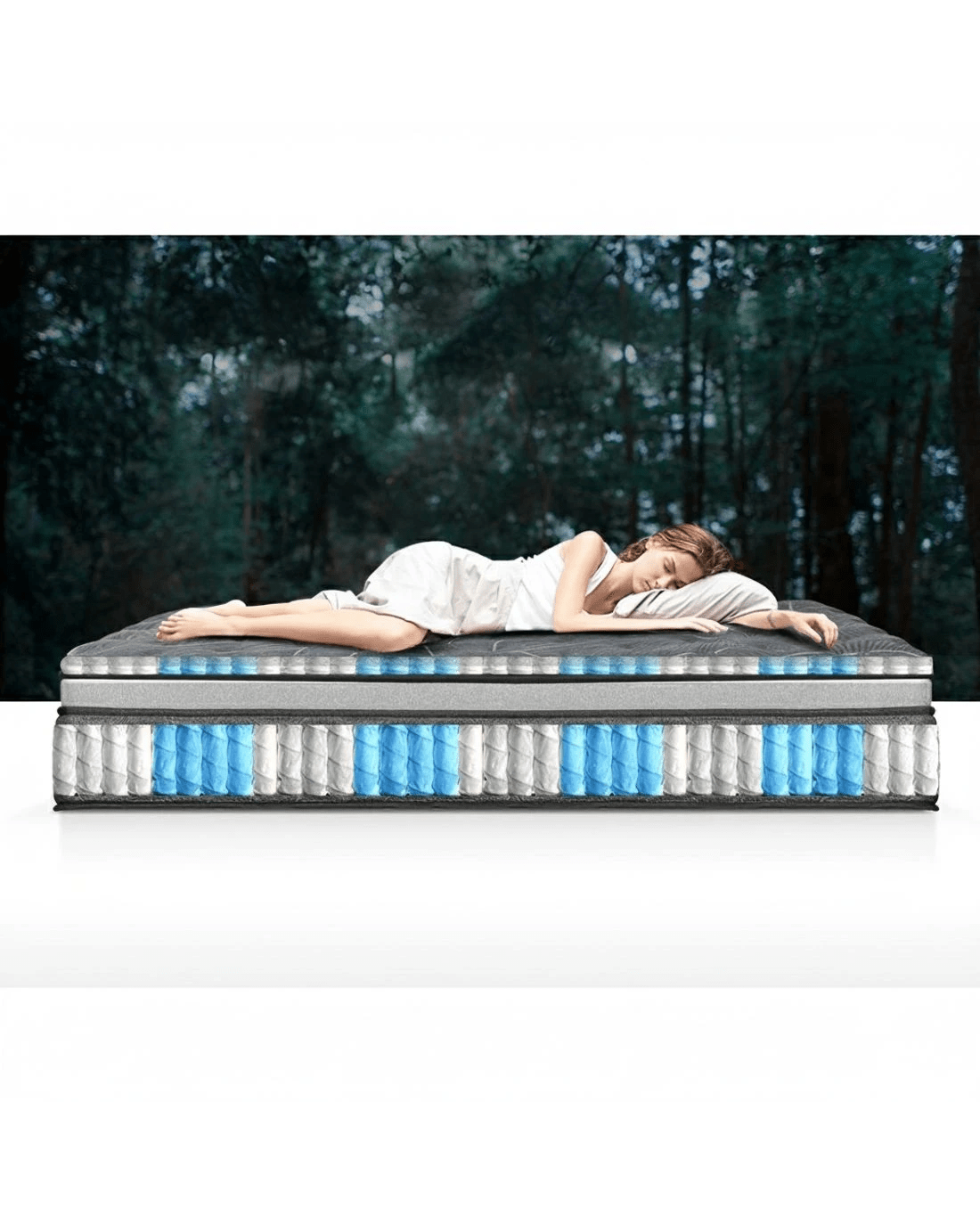 Sleep deeper in comfort with the Camille series Mattress from Giselle Bedding. The double-layer pocket spring design offers more durability for the life of your mattress and segmented support for all important areas of the body. The 9-zone pocket spring system with enhanced 6-turn coils offers support from top to bottom, keeping you comfortable throughout the night and avoiding partner disturbance. The mattress is made from high-density foam, giving the mattress a medium firmness. A soft quilting top layer and bamboo knitted fabric keep the mattress soft and smooth while also being hypoallergenic and 99% dust mite resistant. For the ultimate sleep experience, purchase a Giselle Bedding Camille series Mattress today.