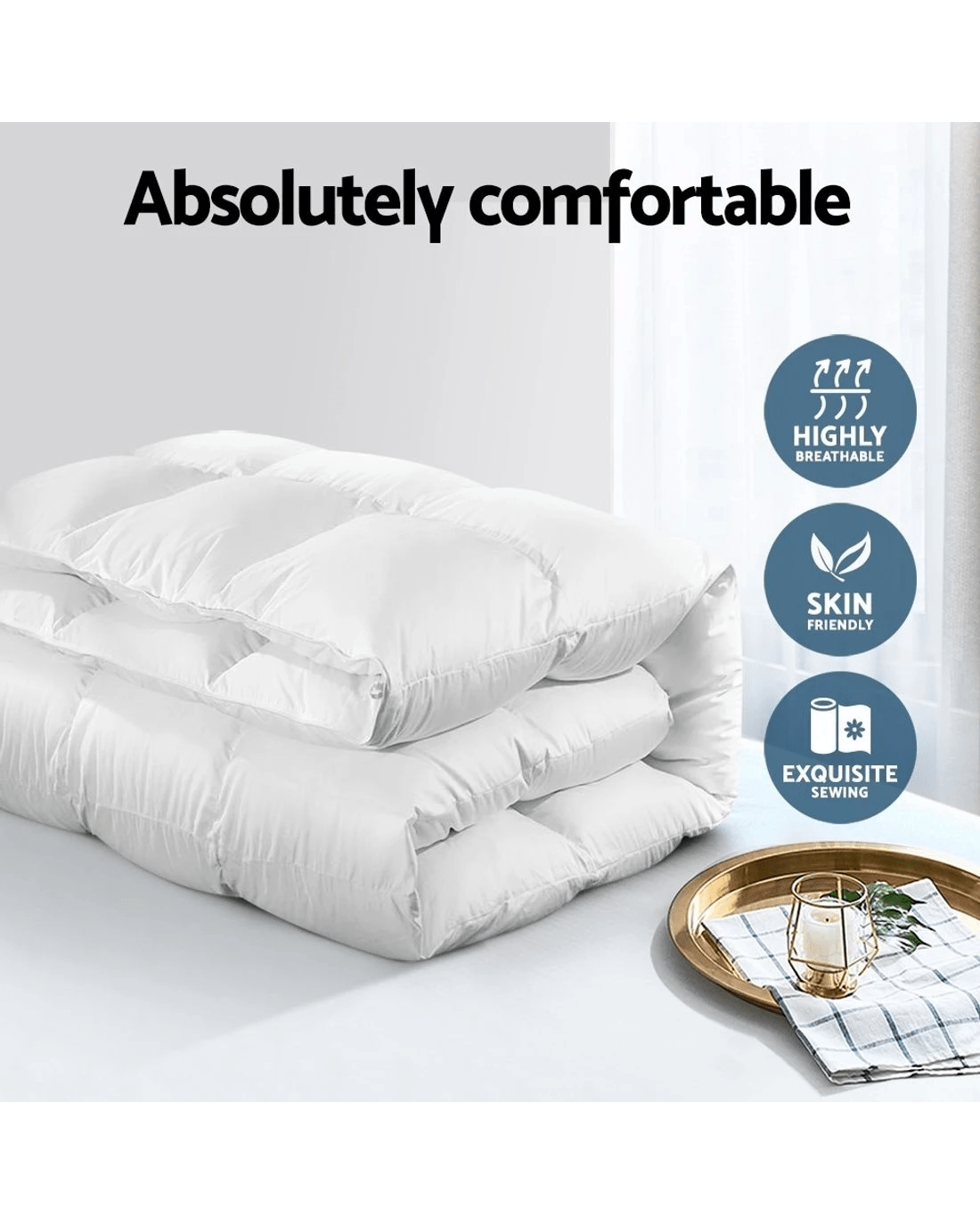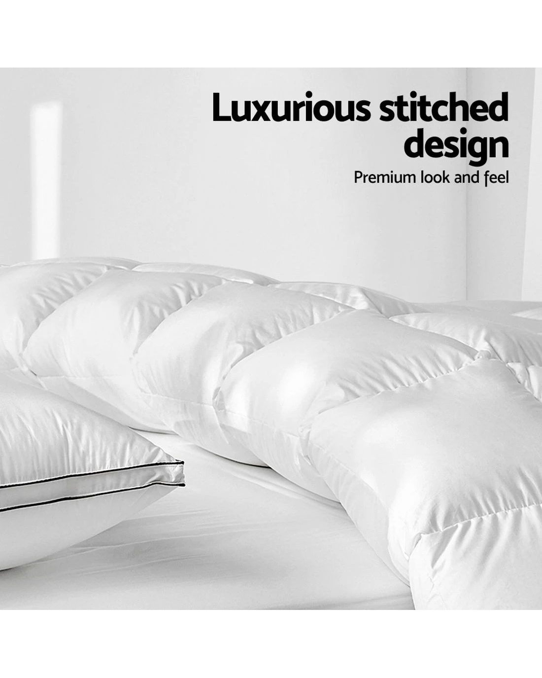 Indulge in luxury comfort with this finely constructed quilt, filled with duck feathers and down with 500GSM weight. The baffle construction prevents shifting of the filling and helps to expand the down to retain heat, providing optimal warmth. Designed for comfort, this featherweight quilt perfect to snuggle in for a good night sleep!