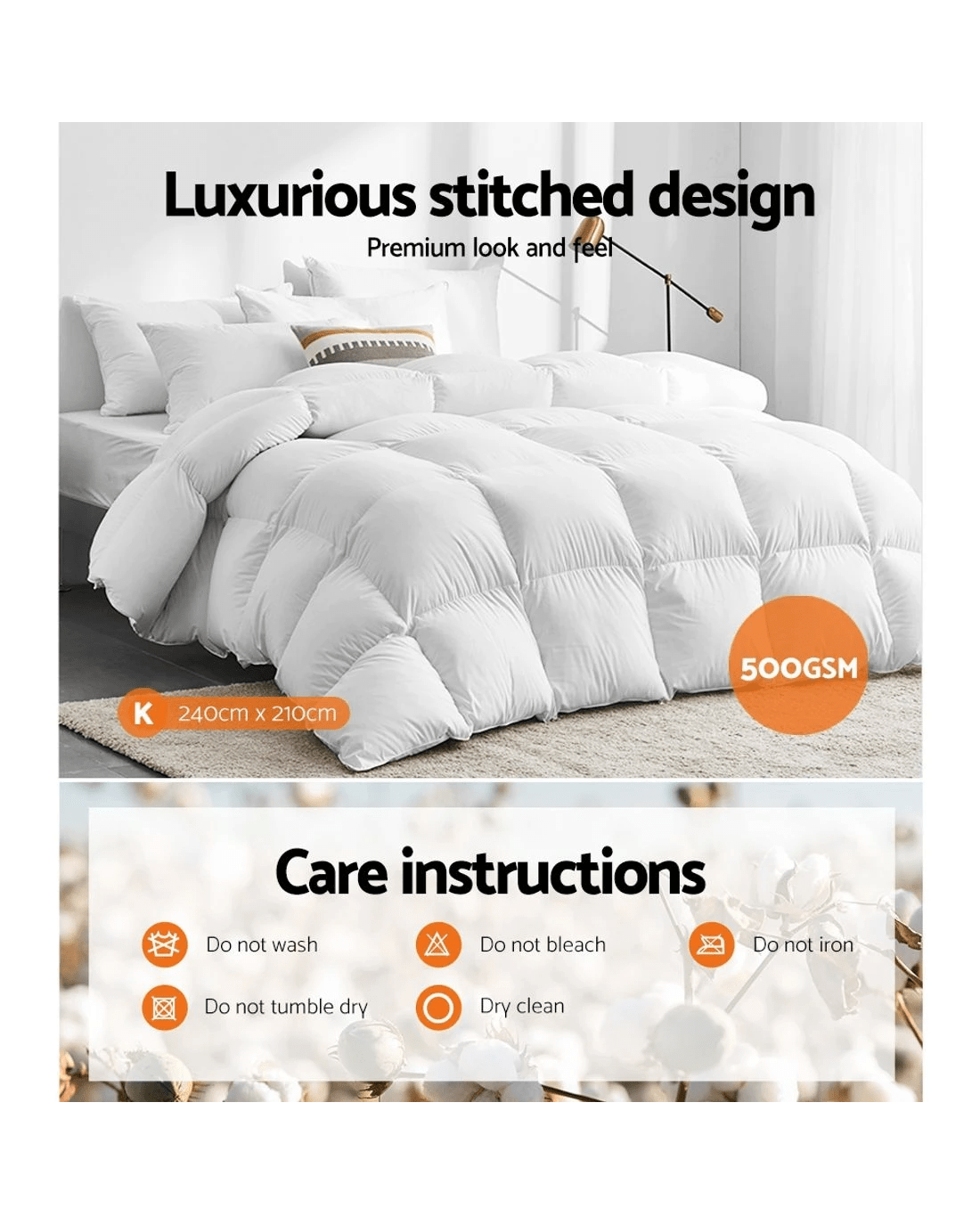 Giselle Bedding 500GSM Goose Down Feather Quilt King - King Bed - White
