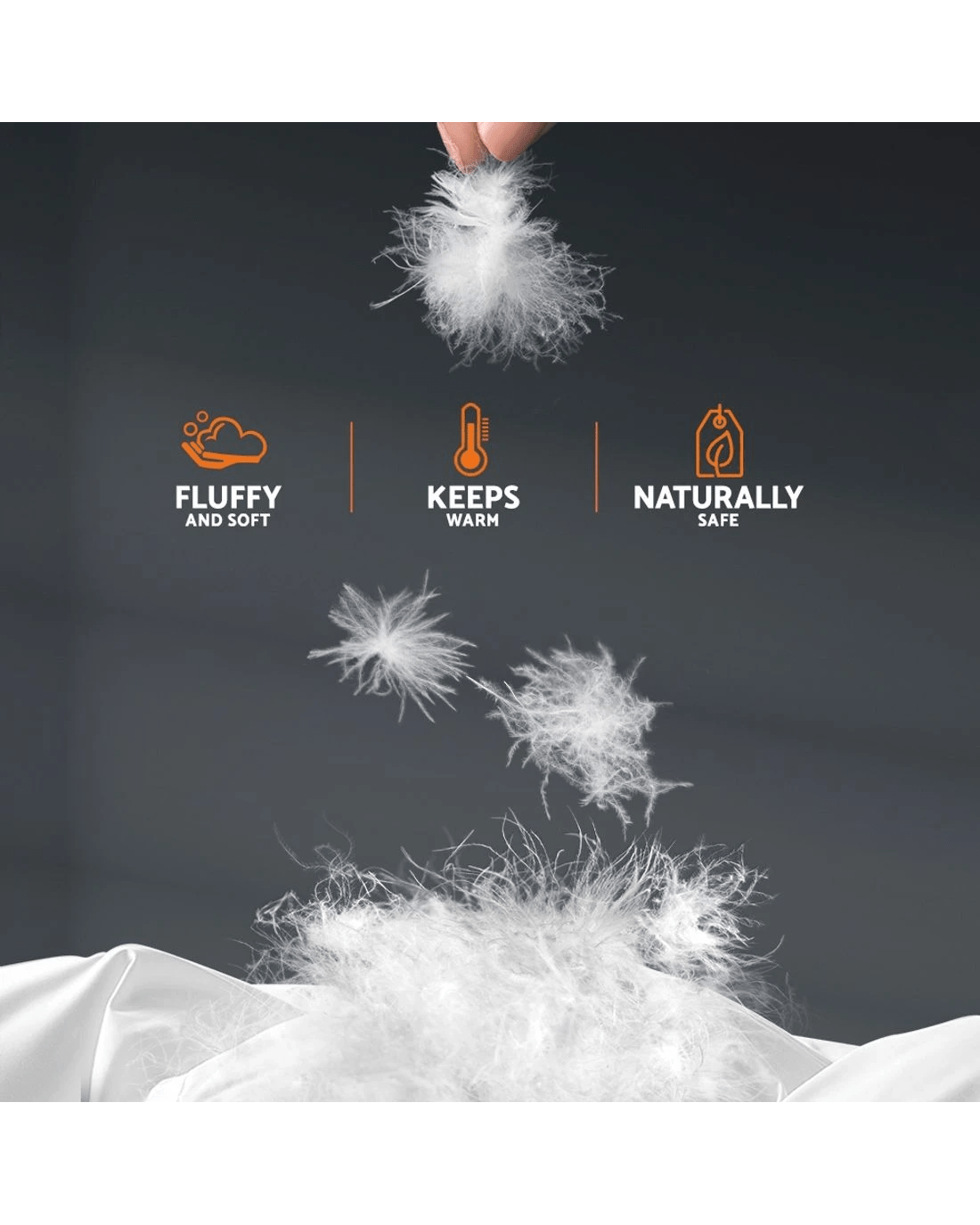 Indulge in luxury warmth with this finely constructed quilt. It's filled with goose feathers and down with 500gsm weight, suitable for cool to winter weather. The baffle construction prevents shifting of the filling and helps to expand the down to retain heat, providing optimal warmth. Designed for comfort, this featherweight quilt is offering you cosy soothing sleeps night after night.