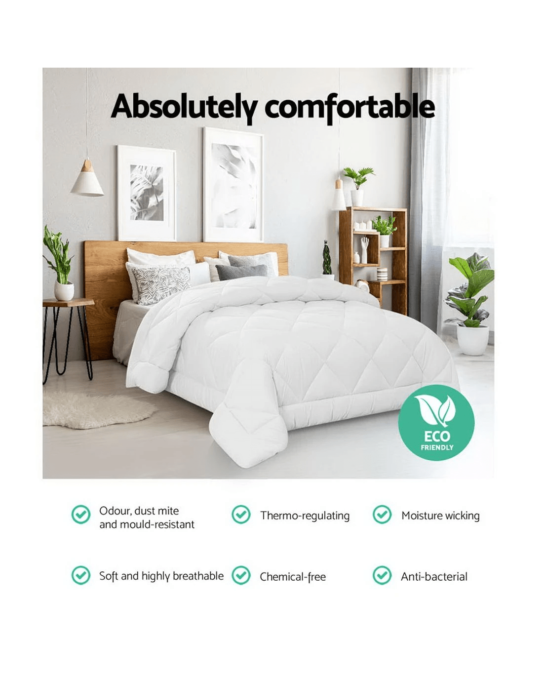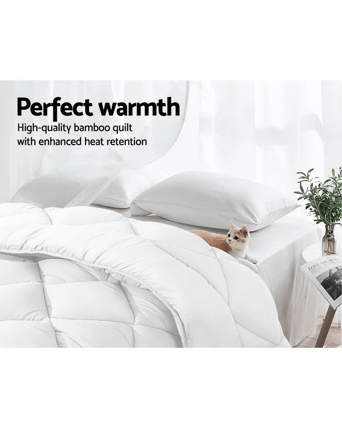 There is always the right reasons and seasons to use a Giselle Bedding Quilt. And with the colder weather, our Bamboo Blend Microfibre Quilt is just perfect to render your sleep unhindered and plush. Made with a beneficial mix of 800gsm bamboo and hollow fibre filling and wrapped in 100% soft microfibre, the microfibre quilt has everything you need and desire. Such as the premium diamond-stich look, the baffle box design for enhanced breathability and durability, quality double-stitched hems, thermos-regulating superior warmth and not least, a quilt that is infinitely eco-friendly and hygienic to every user. Vacuumed packed for total peace of mind and health.