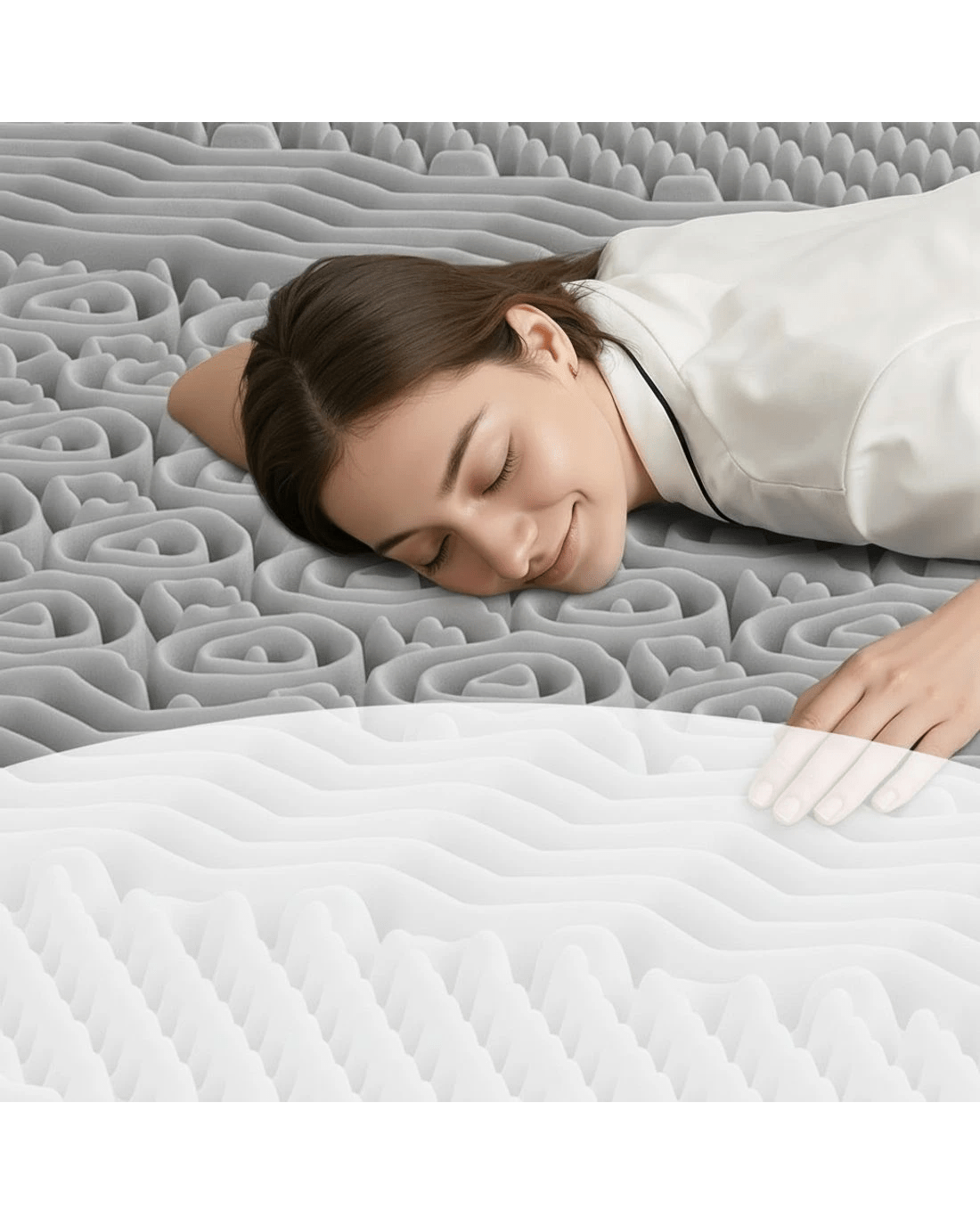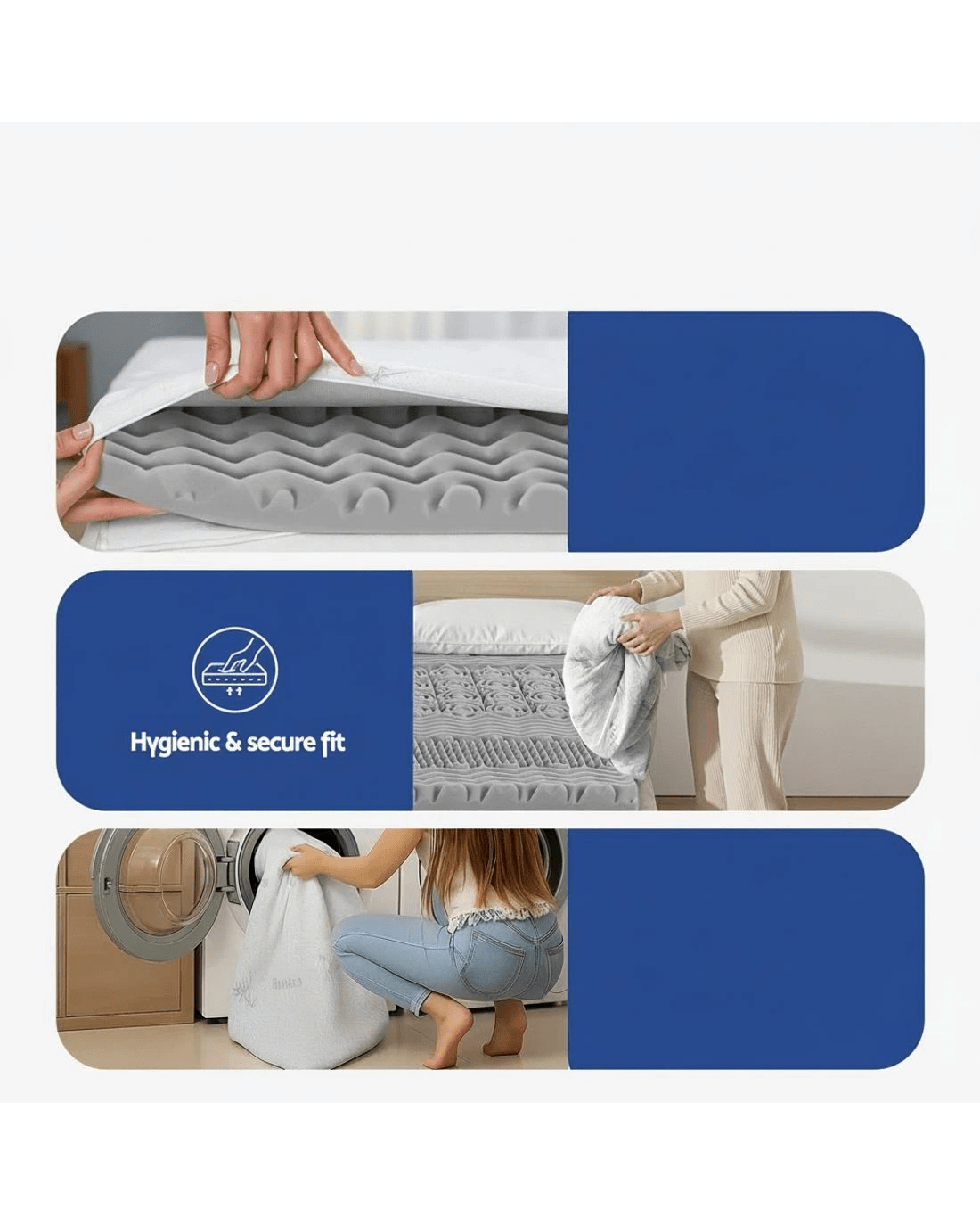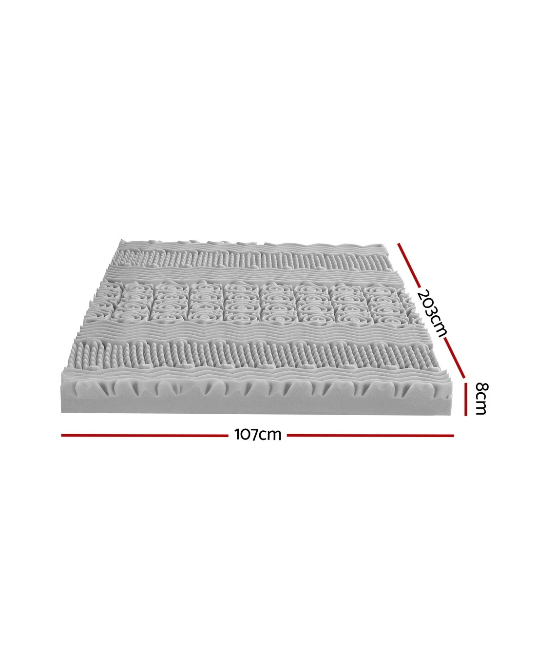 Experience elevated comfort with Giselle Bedding's 8cm graphite-infused memory foam mattress topper. Its 7-zone contoured surface with open cell structure improves airflow, while the memory foam offers lasting support and over 1000 contact points. Finished with a removable bamboo fabric cover and anti-skid base