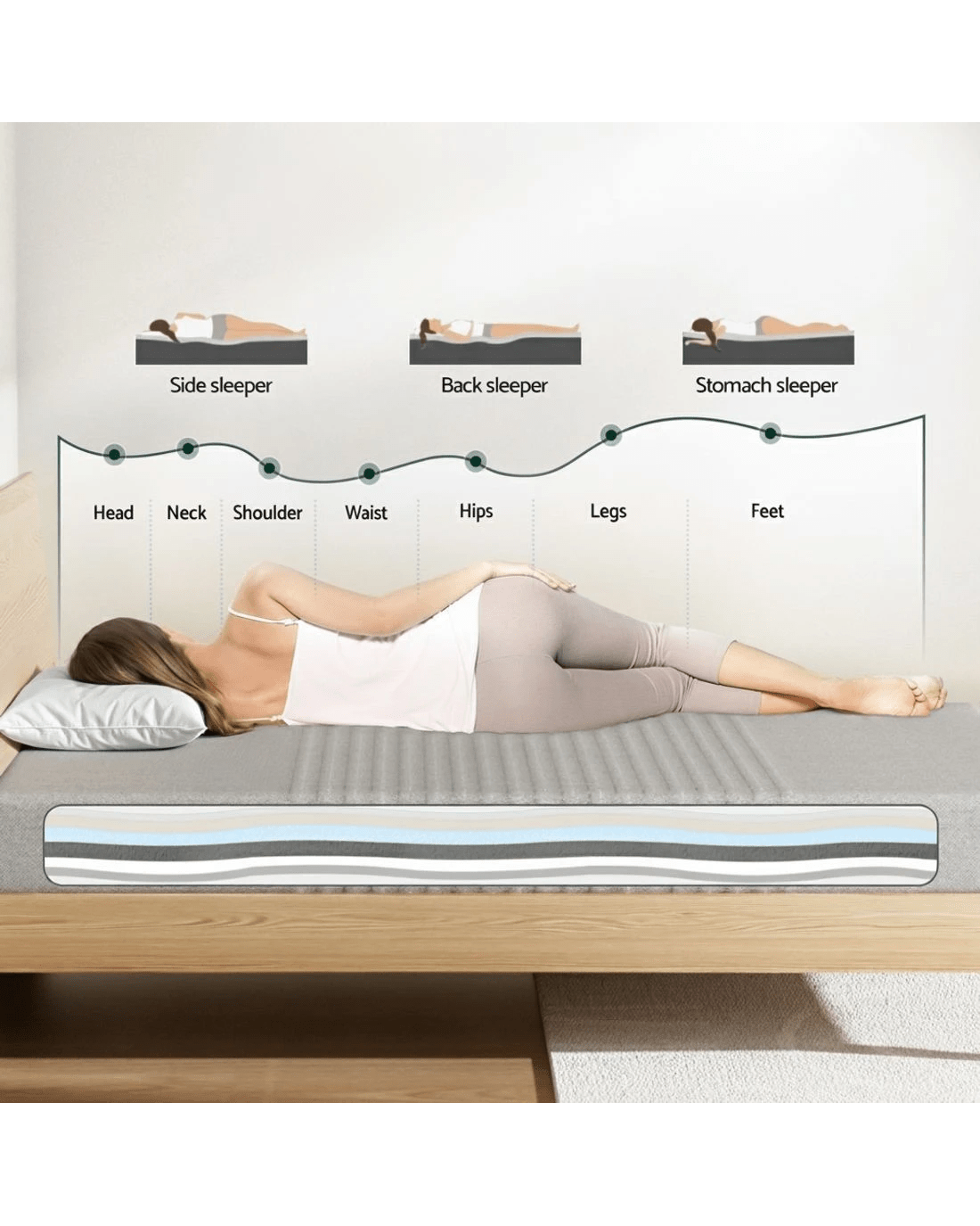 Experience adaptive comfort in Giselle Bedding's NOBLE Series memory foam mattress. This 15cm profile features cooling gel memory foam with 7-zone CNC cutting for body-contouring support, combined with charcoal-infused foam for enhanced stability. The premium bamboo cover promotes airflow while being removable and machine-washable. Giselle Bedding's innovative design minimises partner disturbance, delivering medium-firm comfort perfect for compact spaces.