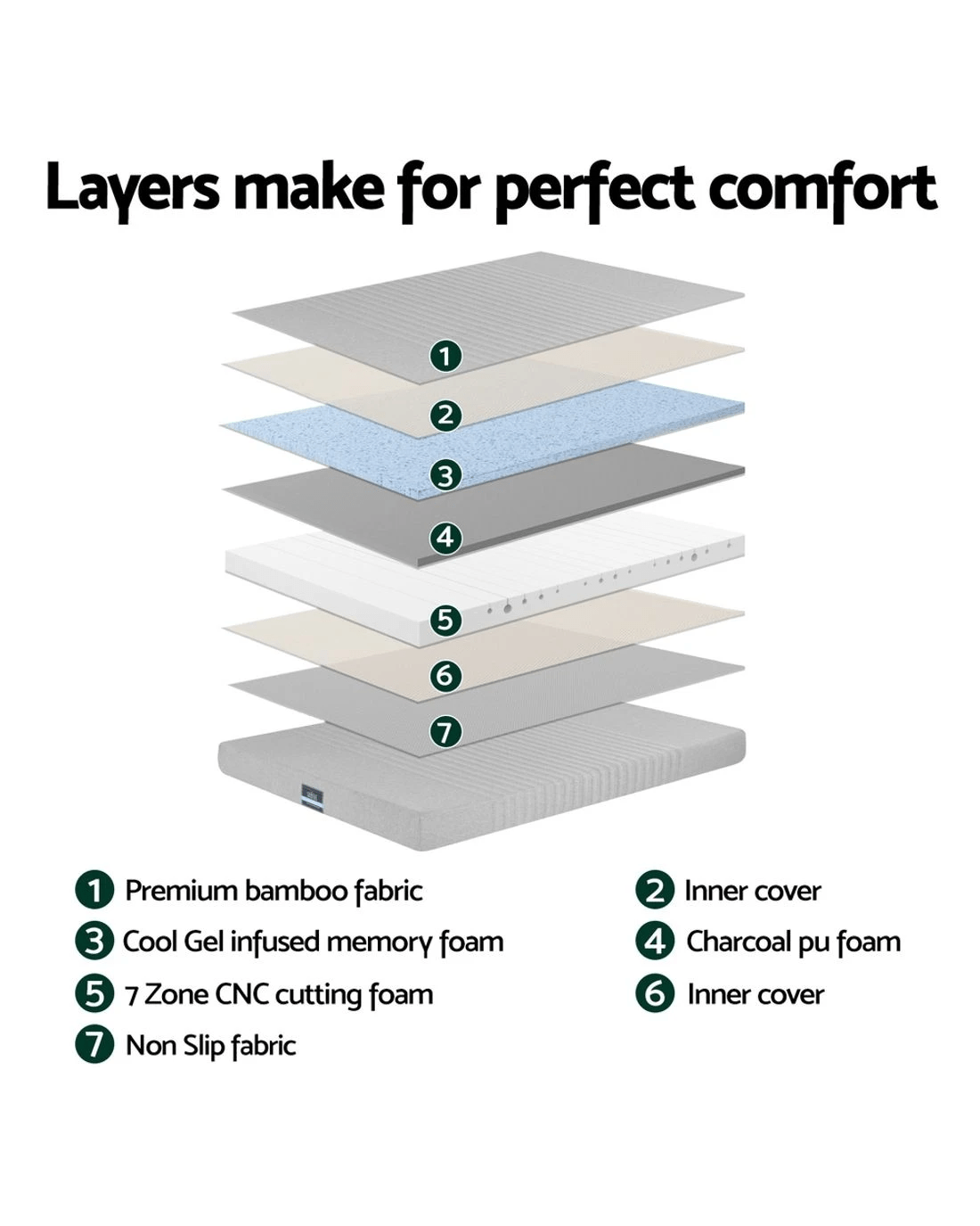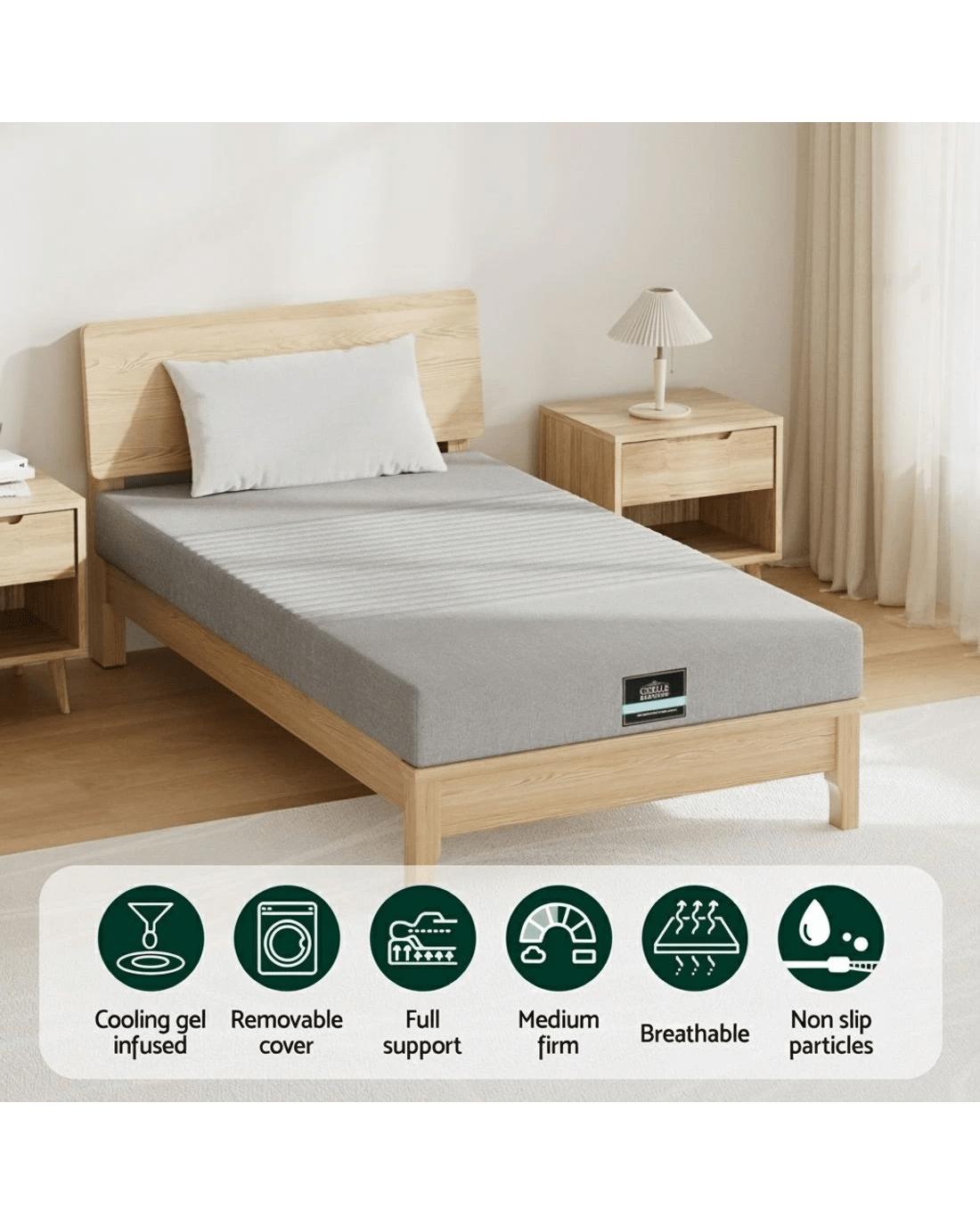 Giselle Bedding Cool Gel Memory Foam Mattress 7-Zone Washable Bamboo Cover 15cm Single - Grey