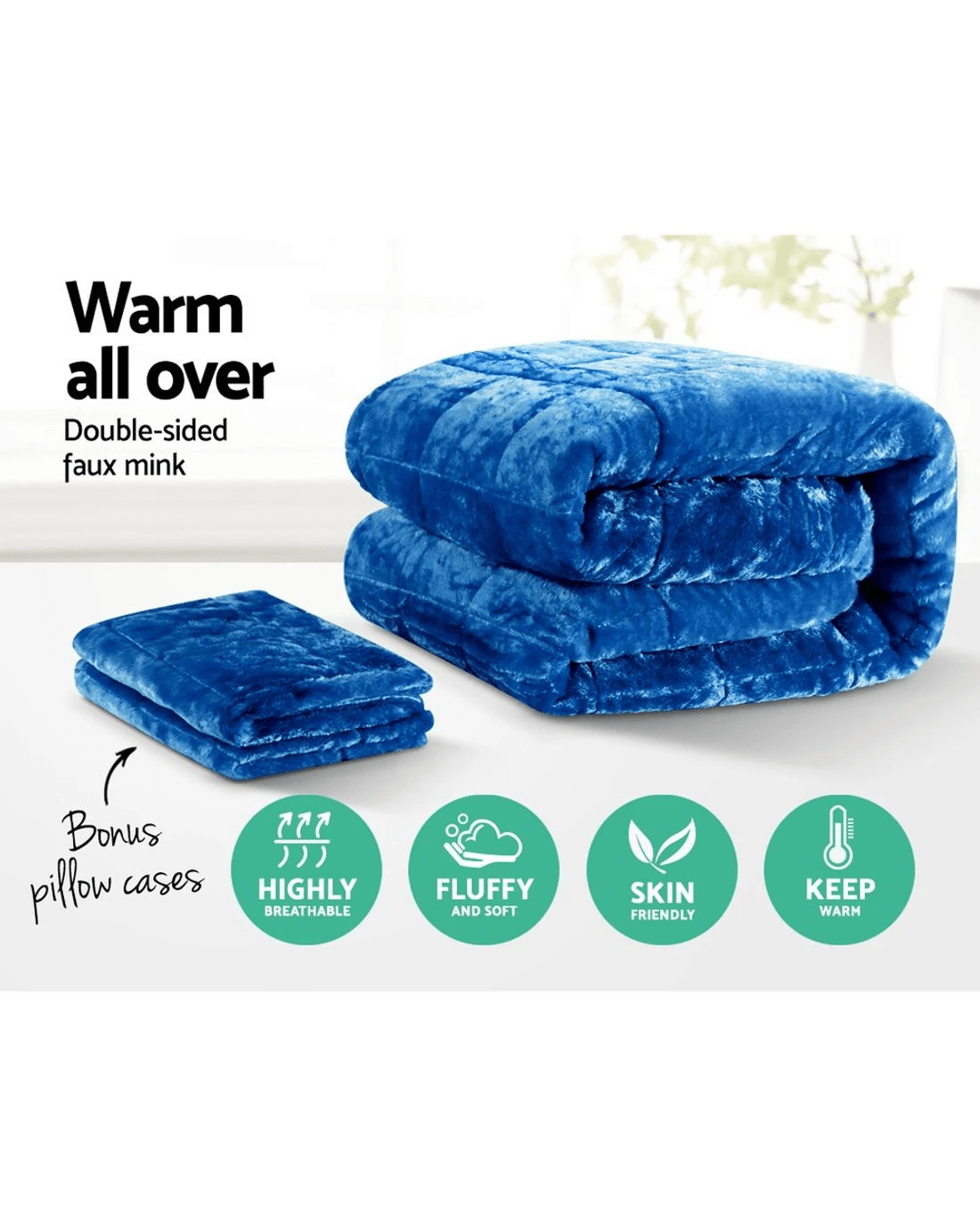 Experience exquisite luxury and warmth with the Giselle Bedding Faux Mink Quilt. With its high-density 300gsm polyester filling and 200gsm cover, the doubled-sided quilt is soft to the touch and well padded for comfort. Its baffle box design ensures a premium feel and no leakages with its meticulous needlework. The quilt is also thermo-regulating to provide warmth always and its winter weight makes it a perfect choice for those windy days and chilly nights. Plus, the silvery sheen brings out the chic factor of this wonderful faux mink quilt that transforms an ordinary bed to an elegant one. Better still, the quilt also comes with matching pillowcases to complete the lovely set. Not least, the quilt and pillowcases are machine washable and suitable for myriad uses where a warm and cosy experience is much appreciated.