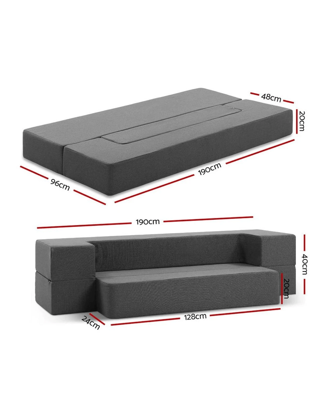 Sold by Aisle SixGiselle Bedding Foldable Mattress Folding Foam Sofa Bed Chair - Single Bed - Grey