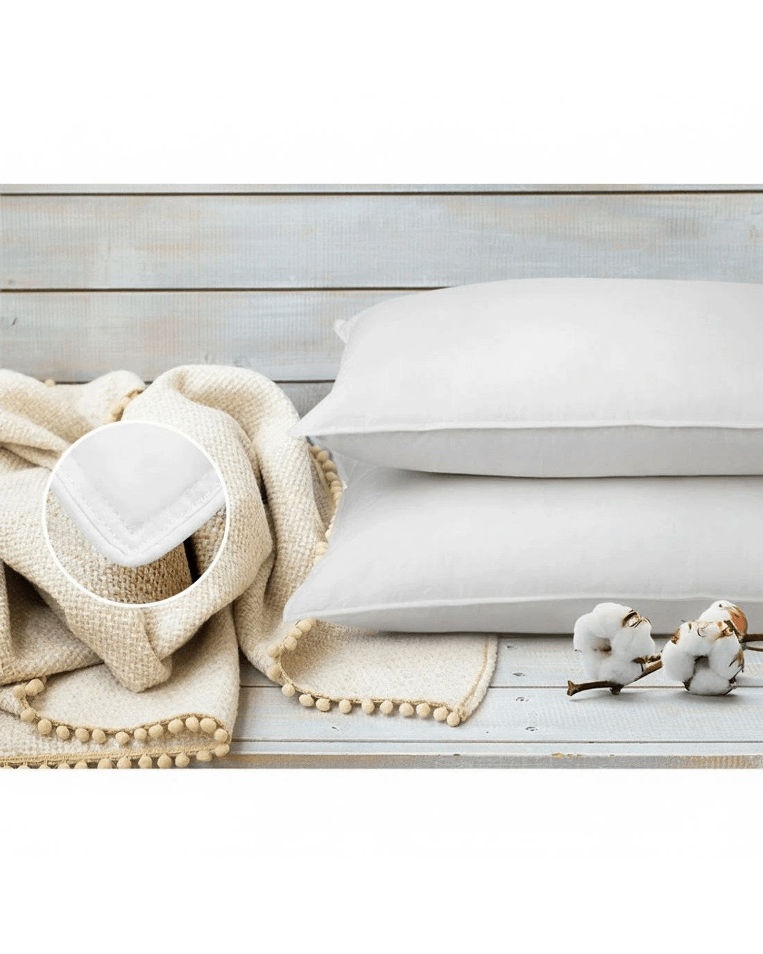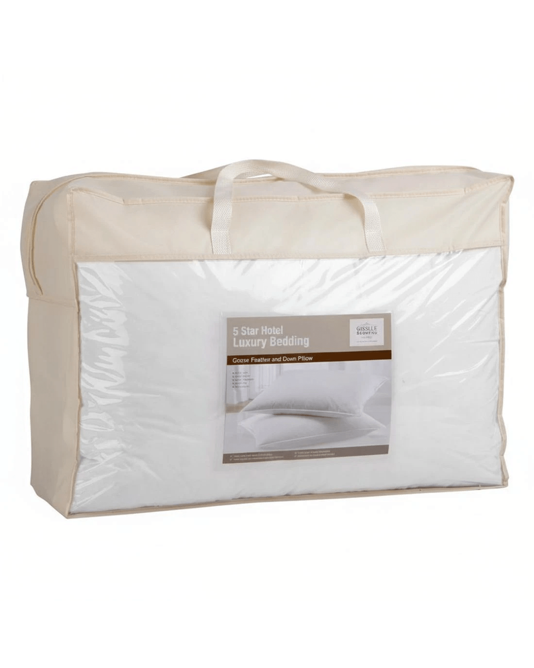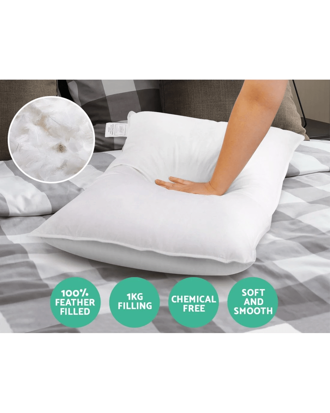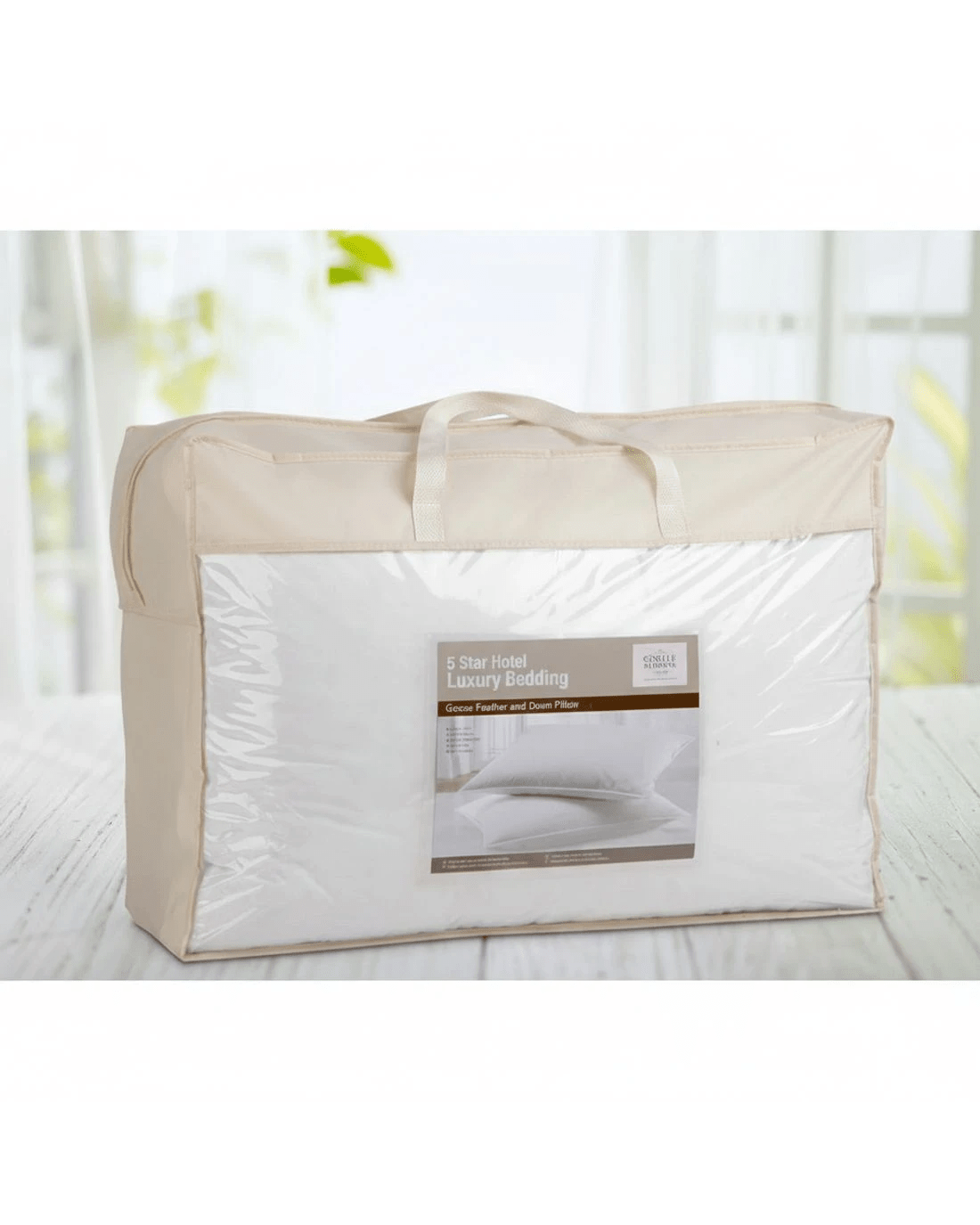 Improve your sleep with this revolutionary Goose feather and down pillows! It's filled with 1kg of non-live plucked goose feather and down offering maximum comfort. The pillow casing is made of quality downproof cotton material and hypo-allergy free. A piece made to bring you great comfort night after night.