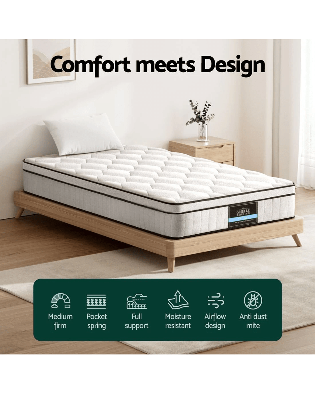 Giselle Bedding Mattress Boucle Fabric Cover Medium Firm 22cm King Single - White