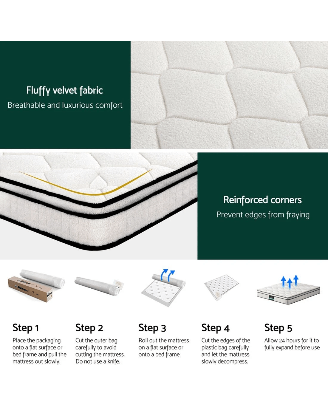 Sold by Aisle SixGiselle Bedding Mattress Boucle Fabric Cover Medium Firm 22cm Queen - White