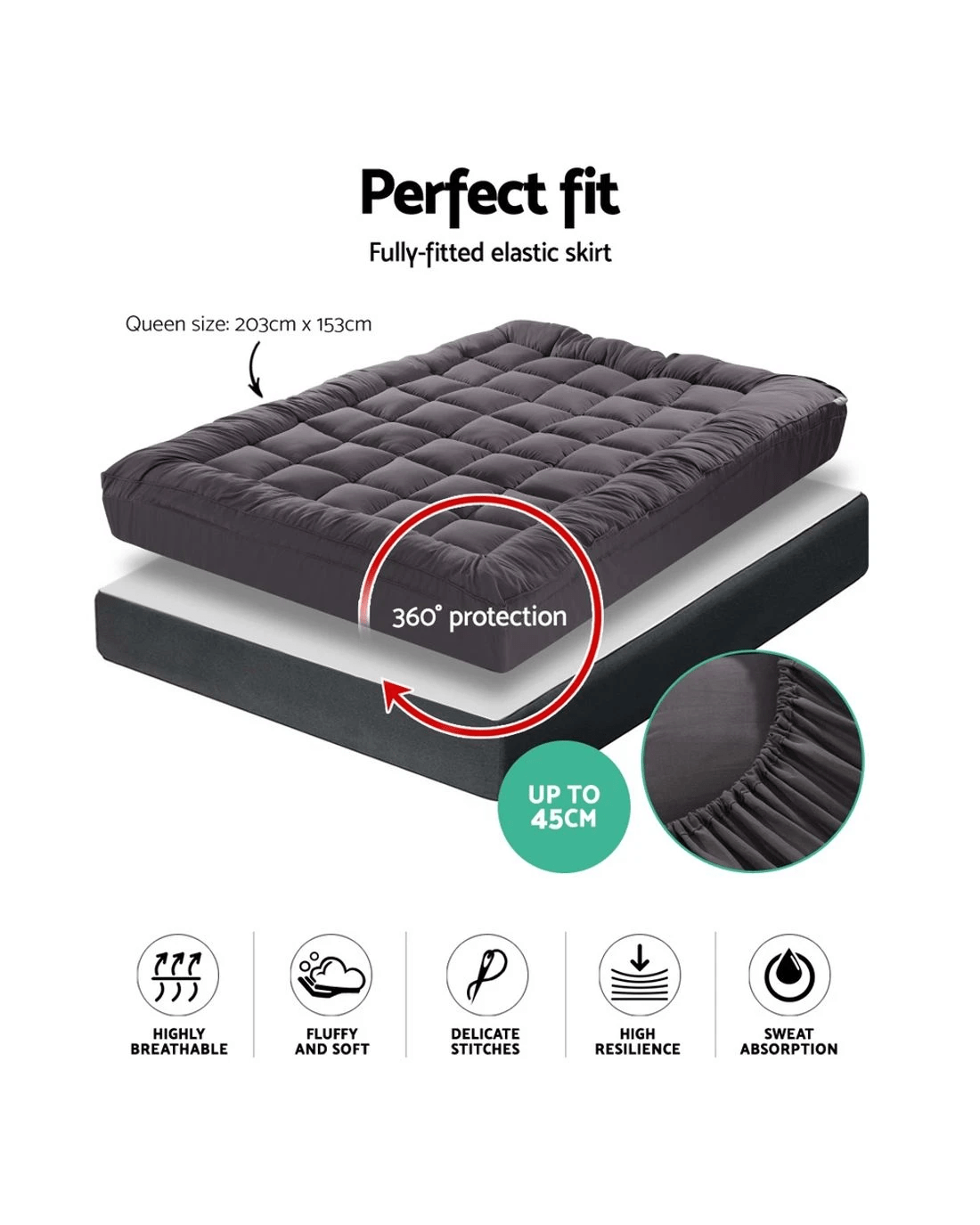 Turn your old mattress into a luxurious one with our Giselle Bedding bamboo charcoal microfibre pillowtop mattress topper. With a generous bamboo charcoal microfibre filling and 400 thread count, the 1000gsm topper provides a lofty cushion of softness supporting your every move. It is memory-resistant, distributes your weight evenly and the square-pattern stitching ensures that all the fillings stay in place even with robust use. Designed for mattresses of up to 45cm thick, the fully-fitted elastic skirt provides a secure grip ensuring the topper will keep it position at all times. Not least, the topper is anti-bacterial, dust mite resistant and anti-allergy for a totally healthy and hygienic sleeping surface with complete peace of mind and body. Available in an assortment of sizes.