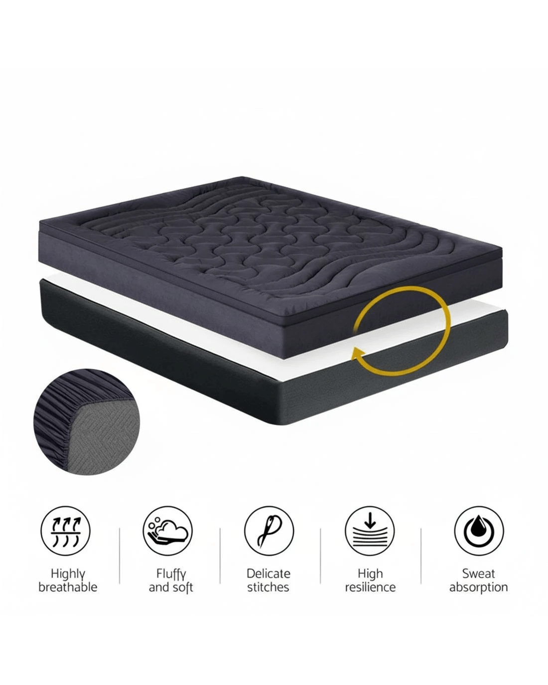Add that extra bit of comfort to your mattress with a Giselle Bedding Pillowtop Mattress Topper. If your mattress is less comfortable than it used to be, the difference our bedding topper makes is night and day. Our topper has a microfibre filling in a baffle box design, with inner air vents to prevent moisture build-up and keep you warm. The topper has 3-zone comfort and allows for even weight distribution to keep you comfortable from top to bottom. It comes with a breathable poly-cotton fabric cover and a 45cm elastic skirt that is machine washable, so you can have a clean bed every time. Get your best sleep with the Giselle Bedding Pillowtop Mattress Topper. Our topper is available in single, king single, double, queen and king sizes.