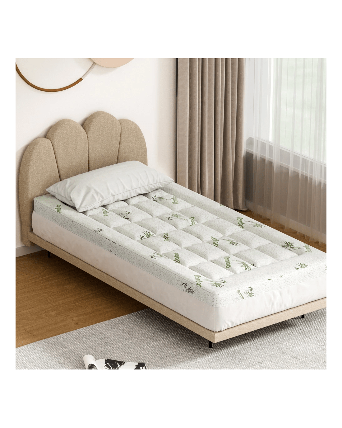 Enhance your sleep with our Giselle Bedding Pillowtop Topper. Featuring a 3D wave quilted pattern, breathable bamboo cover, and anti-allergy properties. It's hygienically vacuum-packed and machine-washable for easy care, ensuring a comfortable and clean sleeping environment.
