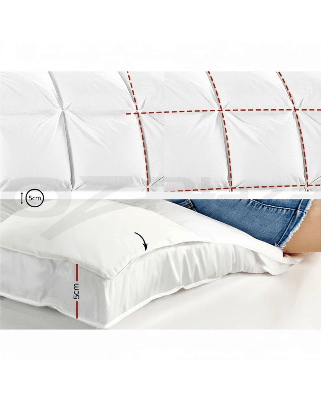Featuring 1000gsm bamboo ball fibre filling housed in a microfiber polyester fabric cover, our 5cm thick topper is overly generous with softness and comfort. The topper actually comprises several pockets that are neatly sewn together to ensure that the filling does not spread and go lumpy. Plus, the fully-fitted 45cm elastic skirt around the topper also ensures that the topper stays in place at all times.