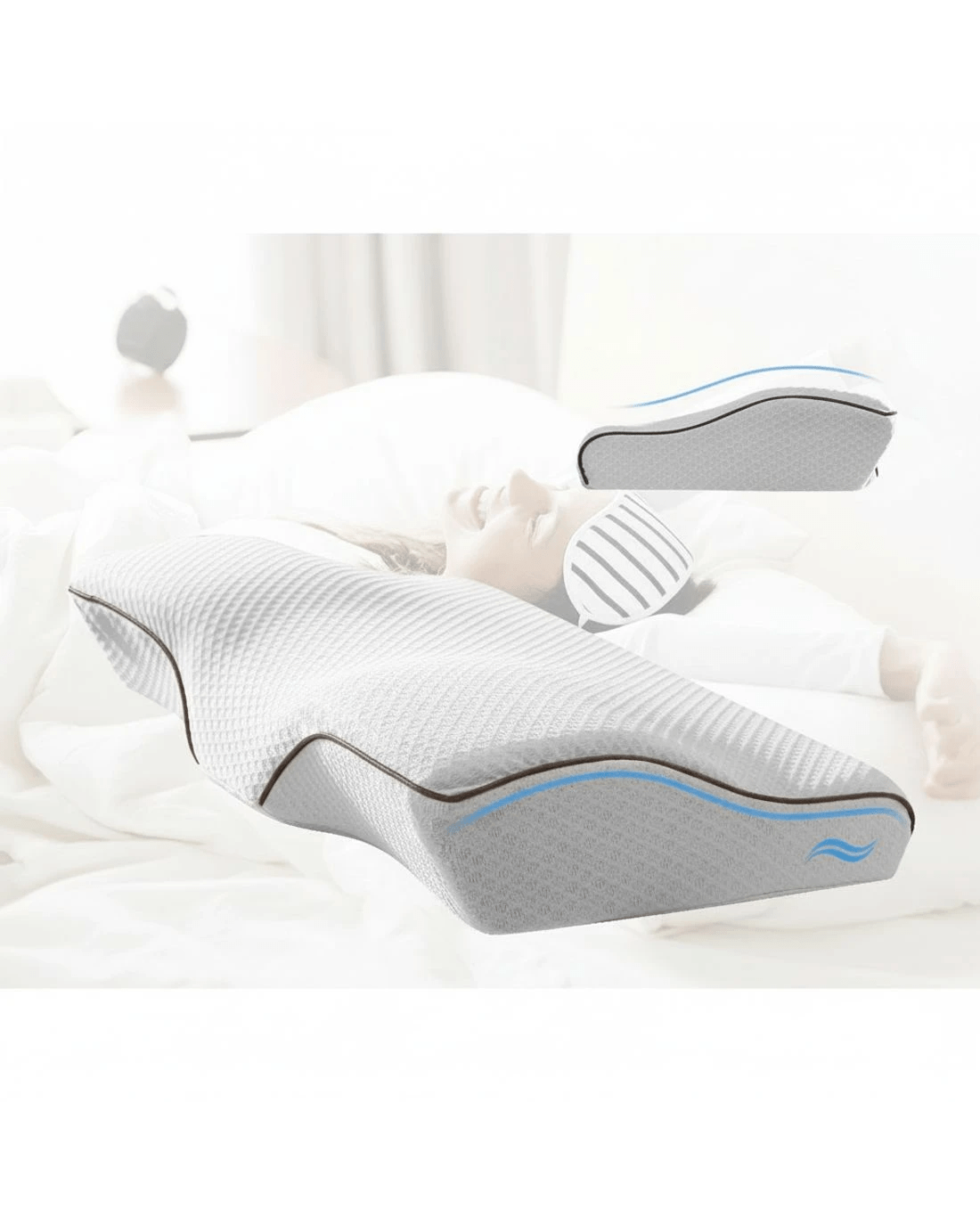 Sold by Aisle SixGiselle Memory Foam Pillow Neck Cervical Butterfly Ergonomic Support - Grey