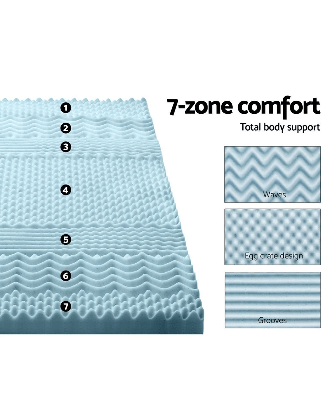 Giselle Bedding Memory Foam Mattress Topper 7-Zone 8cm Double - Double Bed - Blue