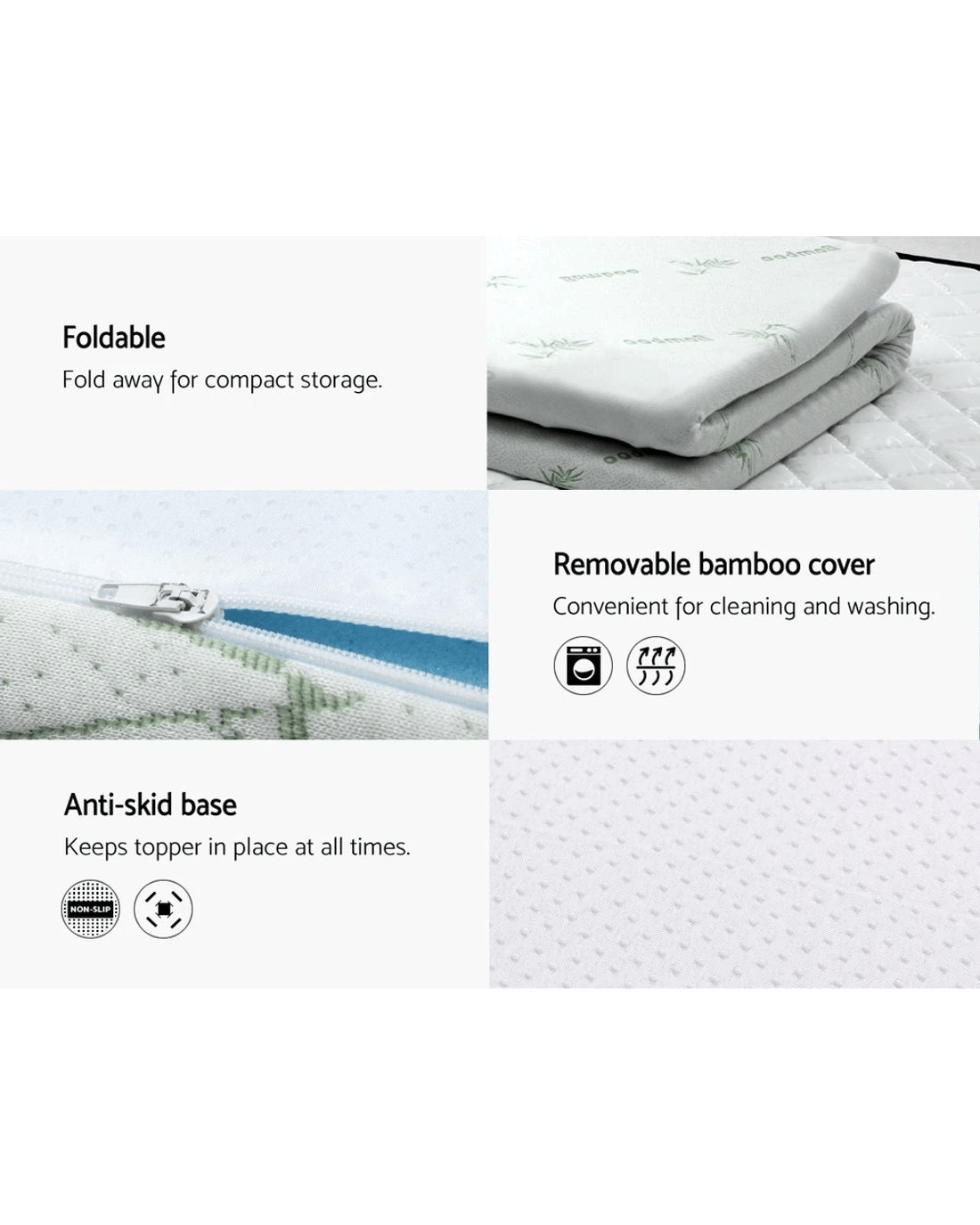 Add that extra bit of comfort to your mattress. An extra 5cm to be precise with our cool gel mattress topper. And the difference is simply wonderful. That's because our topper provides palpable relief to your pressure joints no matter how you sleep, a cooler sleeping surface and not least, individual contouring of your body shape thanks to the memory foam. The memory foam also helps to even body weight distribution, eliminate motion disturbance and dissipate body heat to keep your rest nice and cool. Eco-friendly in every way with its highly breathable bamboo fabric covering, our cool get mattress topper is just the extra that you need to turn your rest and sleep from good to great. Available in Single, Double, Queen and King sizes.
