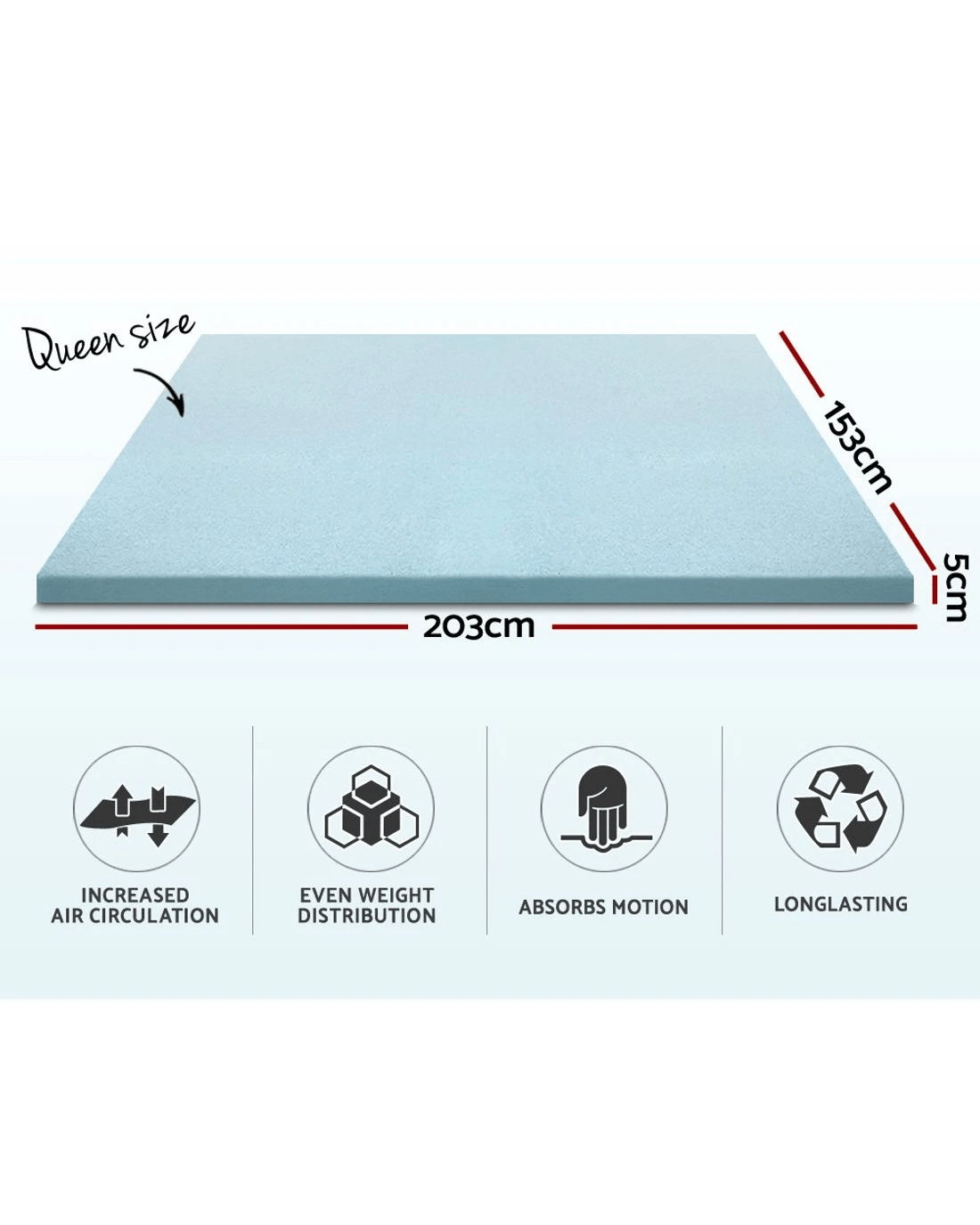 Sold by Aisle SixGiselle Bedding Memory Foam Mattress Topper Cool Gel 5cm Queen - Queen Bed - Blue