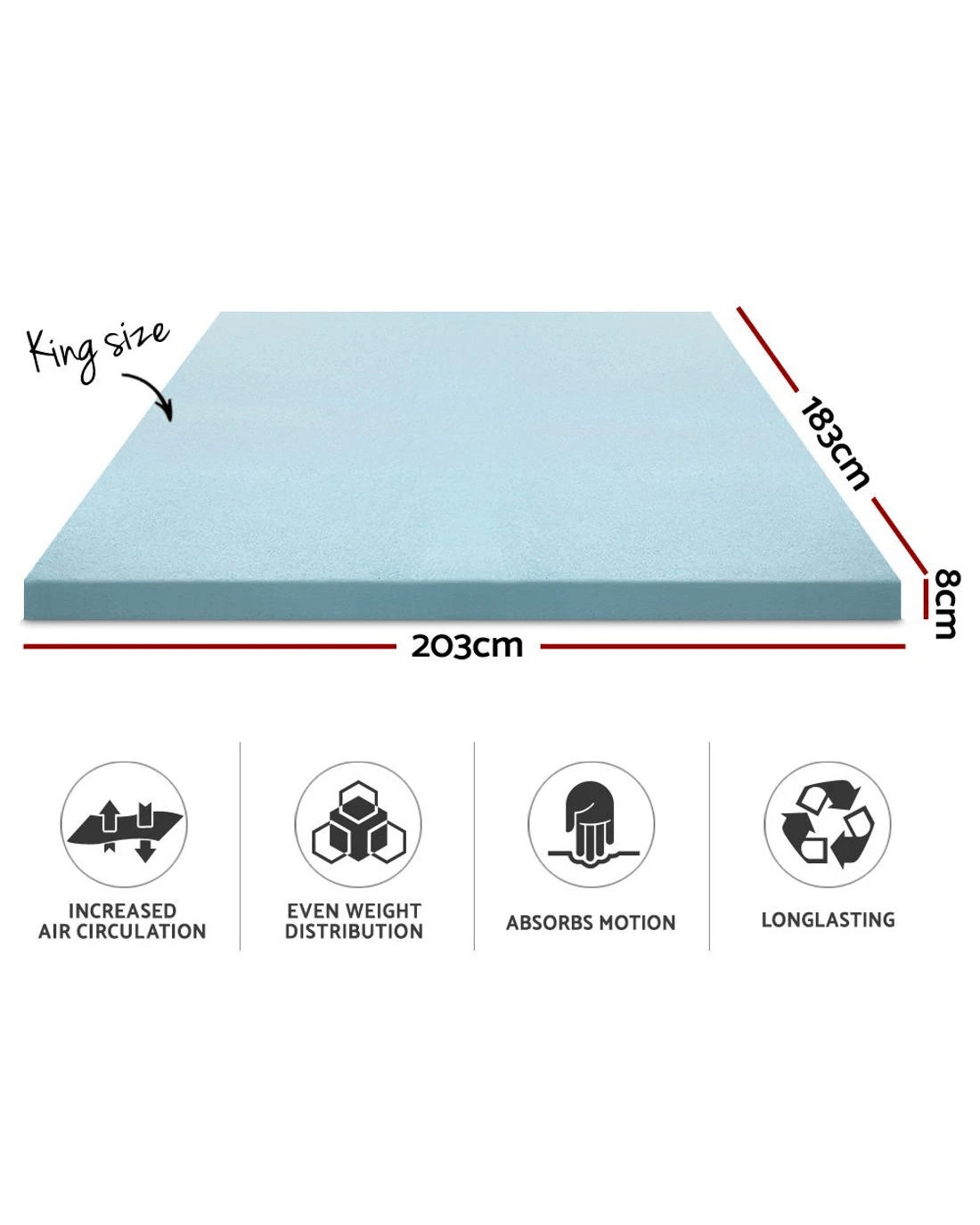 - 203cm x 183cm x 8cm