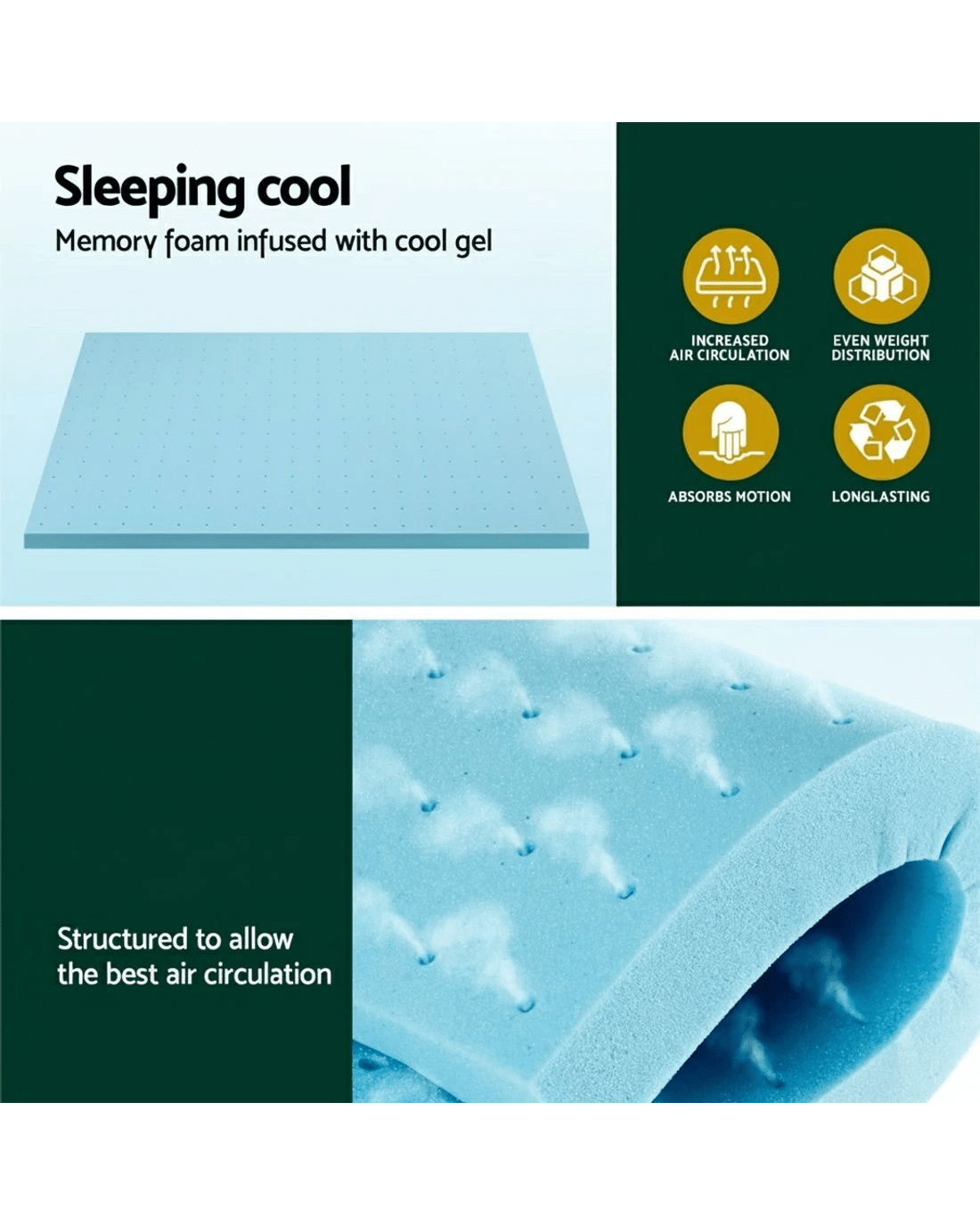 Sold by Aisle SixGiselle Bedding Memory Foam Mattress Topper Ventilated Cool Gel 5cm Queen - Queen Bed - Blue