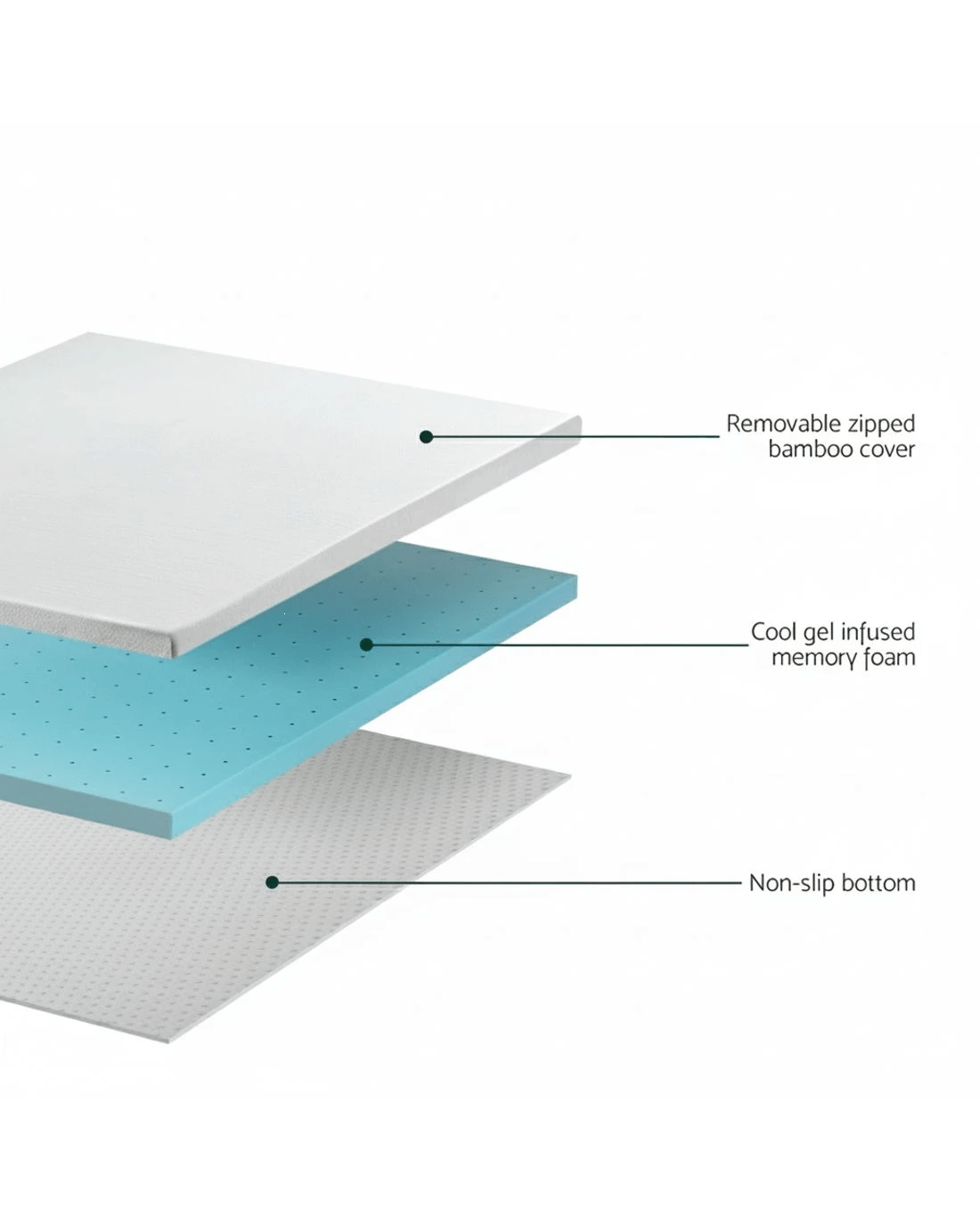 Designed for ultimate functionality, the topper features over 1,000 supporting points for even weight distribution and motion isolation, making it perfect for undisturbed sleep. Resistant to dust mites, mould, and allergens, it is also anti-static and hygroscopic, ensuring a hygienic sleep environment. The anti-skid base keeps it securely in place, making it a practical addition to any bed.