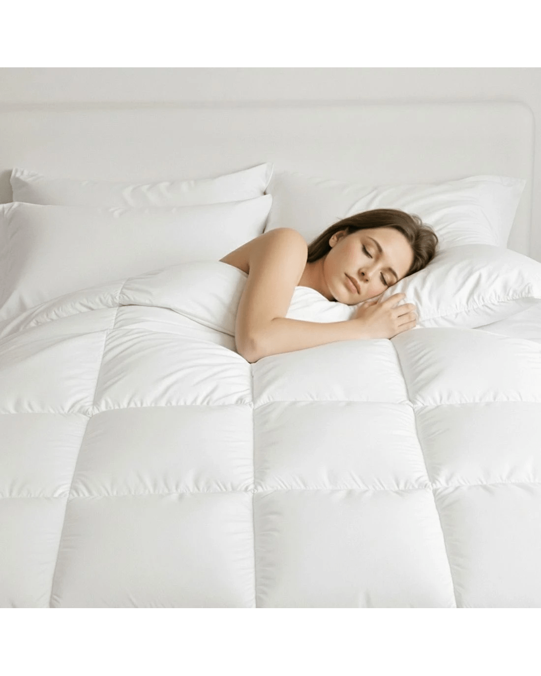 Experience true all-season comfort with the Giselle Bedding Microfibre Quilt. The 400GSM filling provides a soft, lofty, down-like feel perfect for year-round Australian weather. Featuring baffle box stitching to prevent shifting, this quilt is expertly designed for lasting durability and maximum insulation. Its anti-allergic construction ensures a hygienic sleep environment, while being fully machine washable for effortless care.