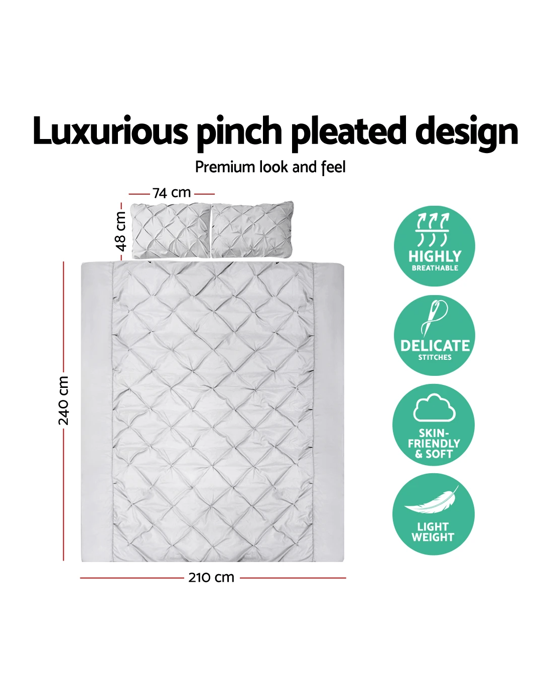 King quilt cover: 240 x 210cm