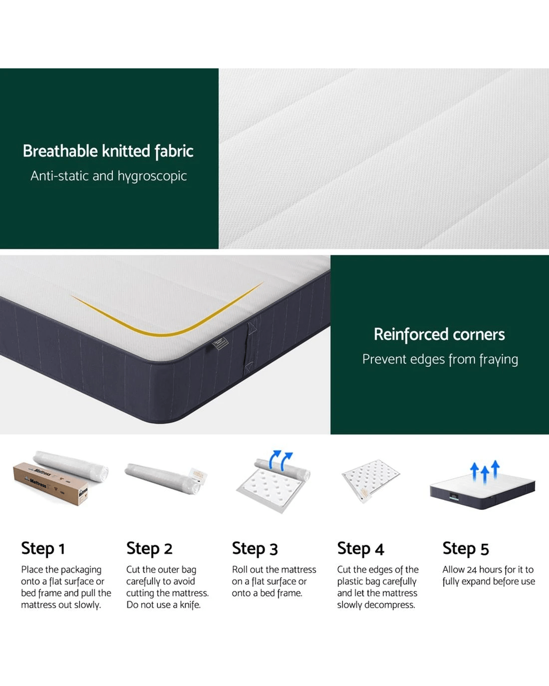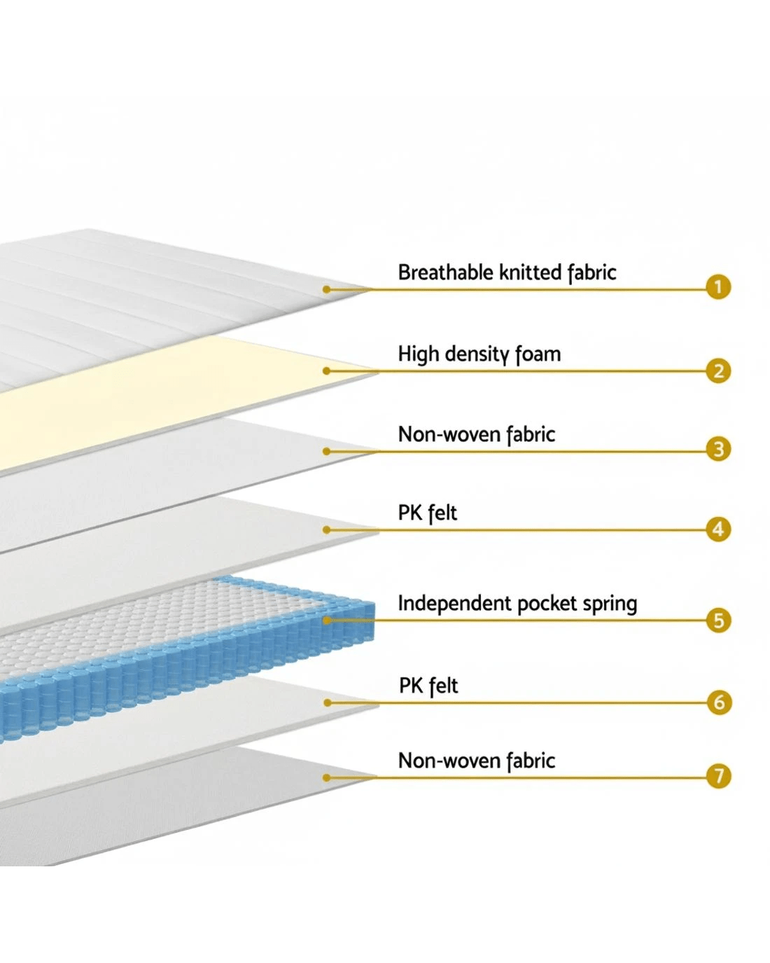 Experience premium comfort with Giselle Bedding Cloud Series mattress. The 20cm thickness combines breathable knitted fabric with Tight Top design for surface adaptability. 7.0 firmness rating and independent pocket springs deliver targeted body support. Enhanced 6-turn coils work with high-density foam to maintain structural integrity, while reinforced edges prevent roll-off. Suitable for most bed frames